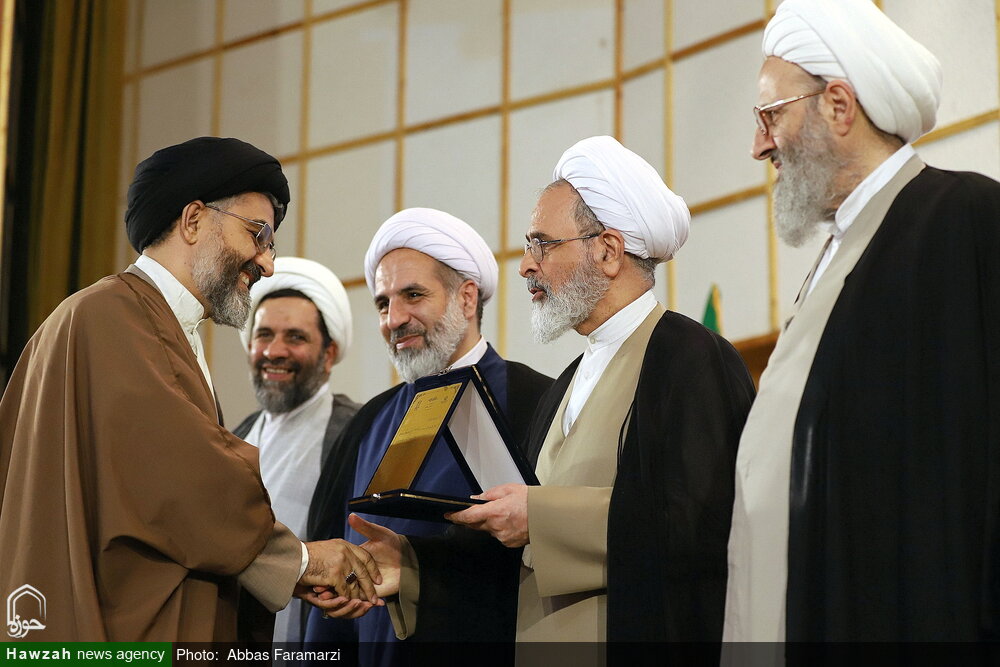 در این مراسم همچنین از صاحبان آثار برگزیده با حضور آیت اله اعرافی تقدیر به عمل آمد.