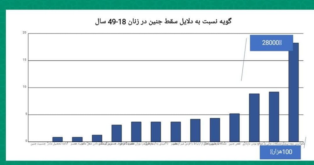 آخرین پژوهشی که راجع به عوامل و گویههایی که در بحث سقط جنین های عمدی در زنان ۱۸ تا ۴۹ سال ایرانی انجام شده، اولین عامل، «نخواستن فرزند بیشتر» عنوان شده که با تفاوت دوبرابری نسبت به عامل بعدی که مشکلات اقتصادی بوده، از سوی مخاطبان بیان شده است.