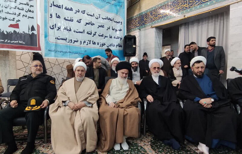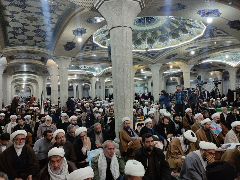 علما، شخصیتها و مدیران حوزوی از جمله آیت الله علیرضا اعرافی مدیر حوزههای علمیه، آیت الله سید هاشم حسینی بوشهری رئیس جامعه مدرسین حوزه علمیه قم، آیت الله محسن اراکی عضو شورای عالی حوزه و مجلس خبرگان رهبری، نمایندگان بیوت مراجع عظام تقلید و دیگر بزرگان همگام با طلاب و اساتید و مردم انقلابی در این اجتماع حضور دارند.