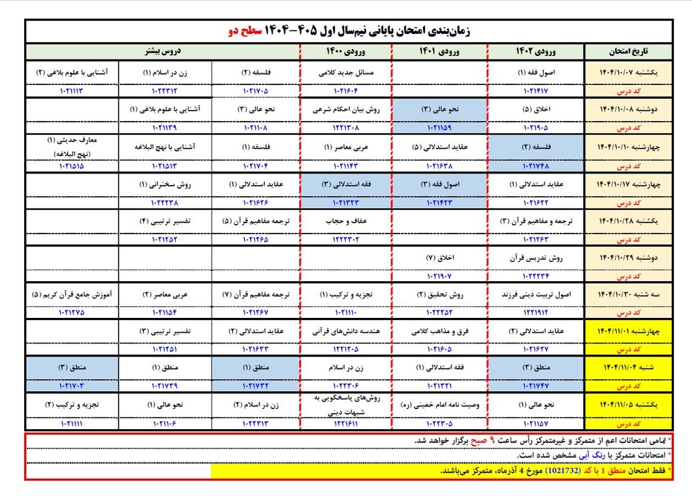 به گزارش خبرگزاری حوزه، زمانبندی امتحانات لغو شده طلاب سطح دو و سه مرکز آموزش‌های غیرحضوری به شرح ذیل می‌باشد: