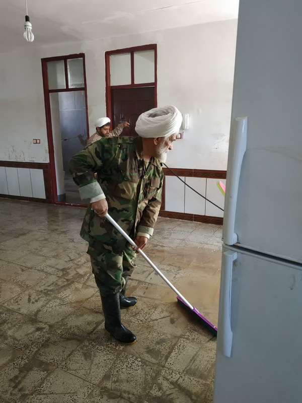 امام جمعه ای که منازل و وسایل سیل زدگان را تمیز می کند+ عکس