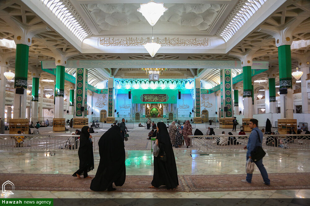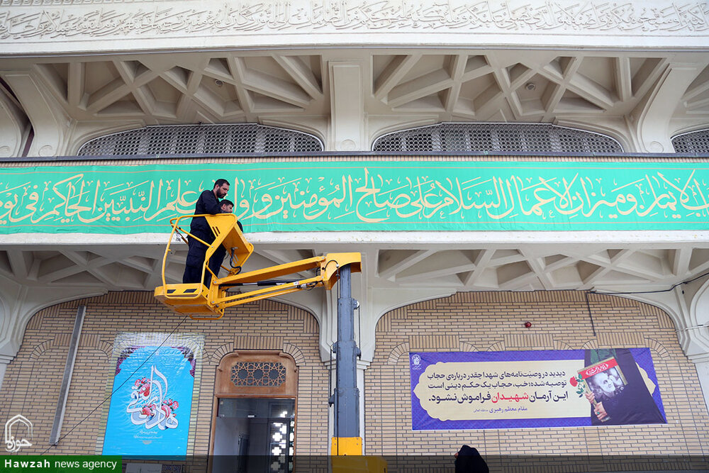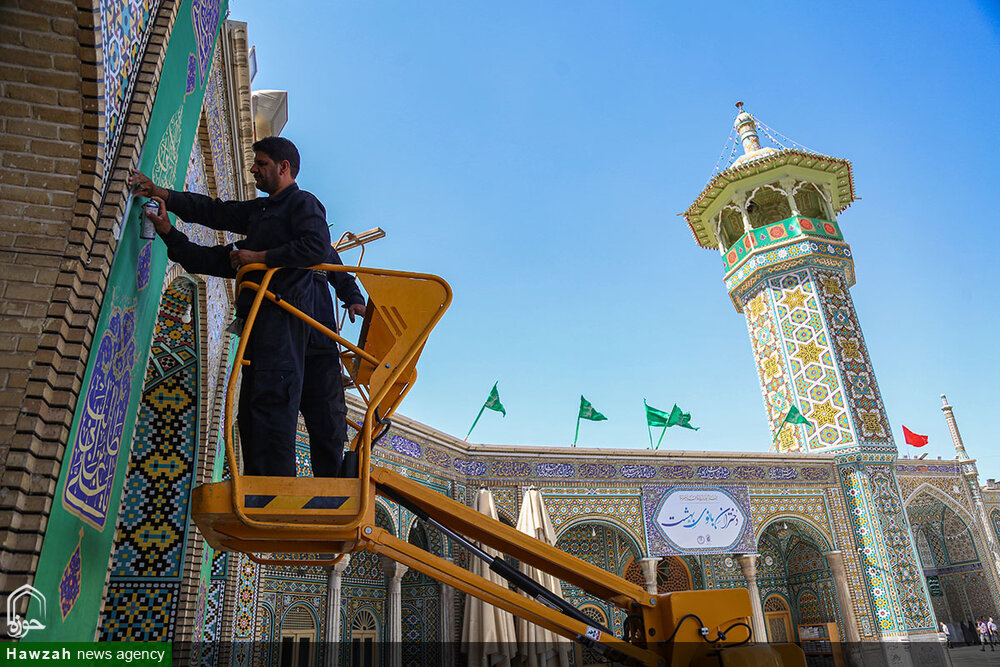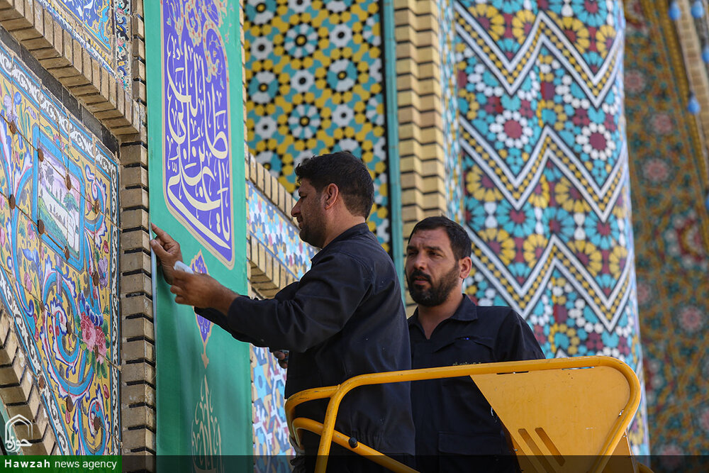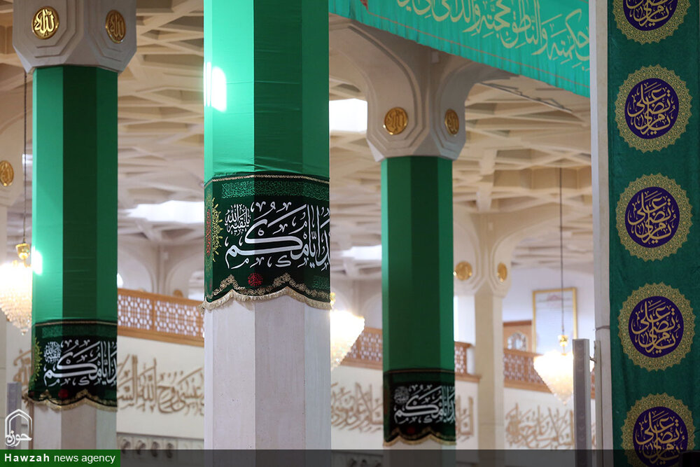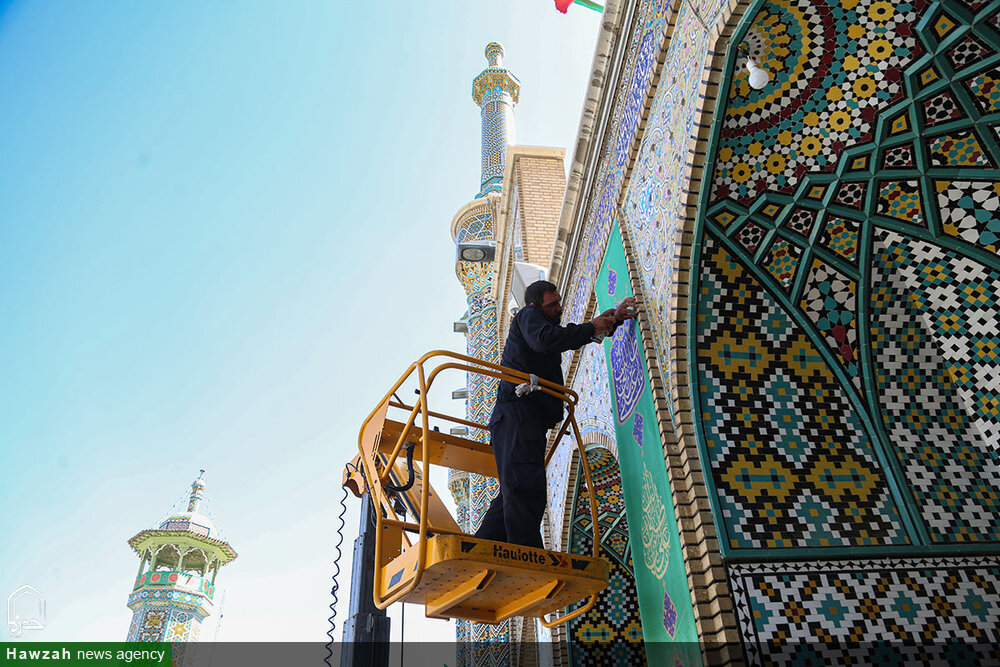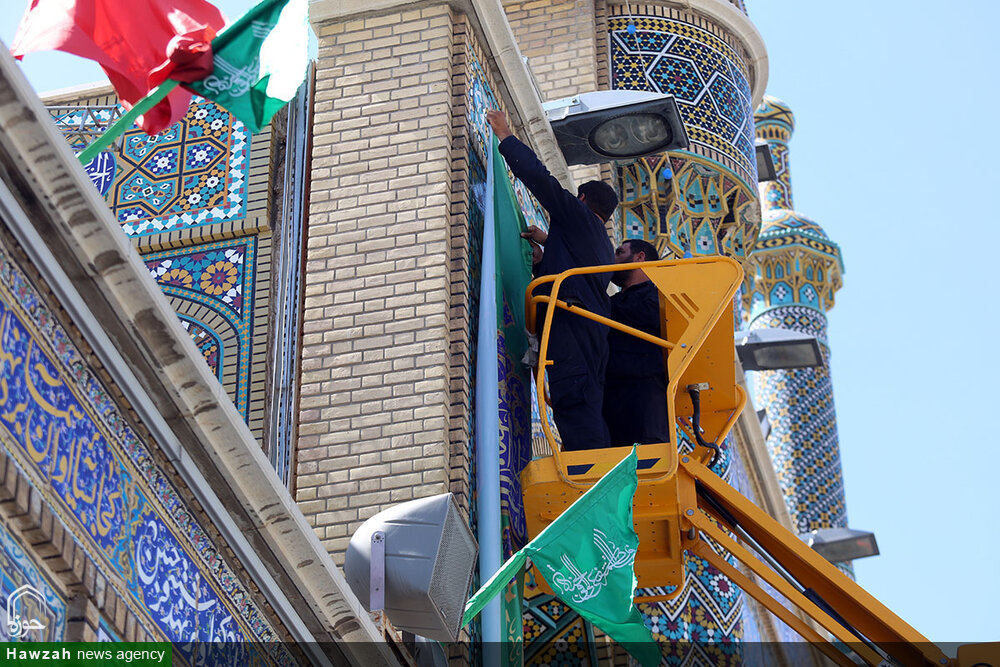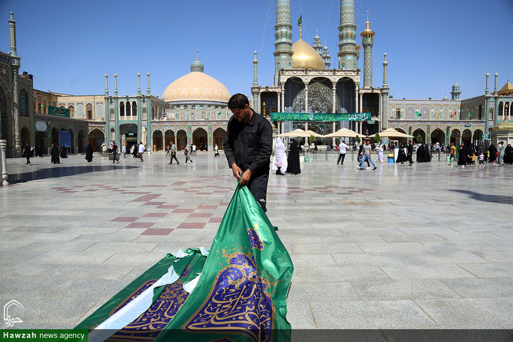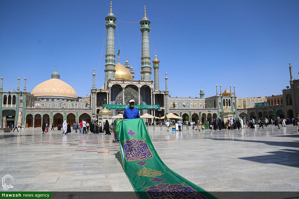 حوزه/ حرم مطهر حضرت فاطمه معصومه سلام الله علیها در آستانه عید غدیر به همت خادمان واحد فضاسازی حرم، سبزپوش شد.