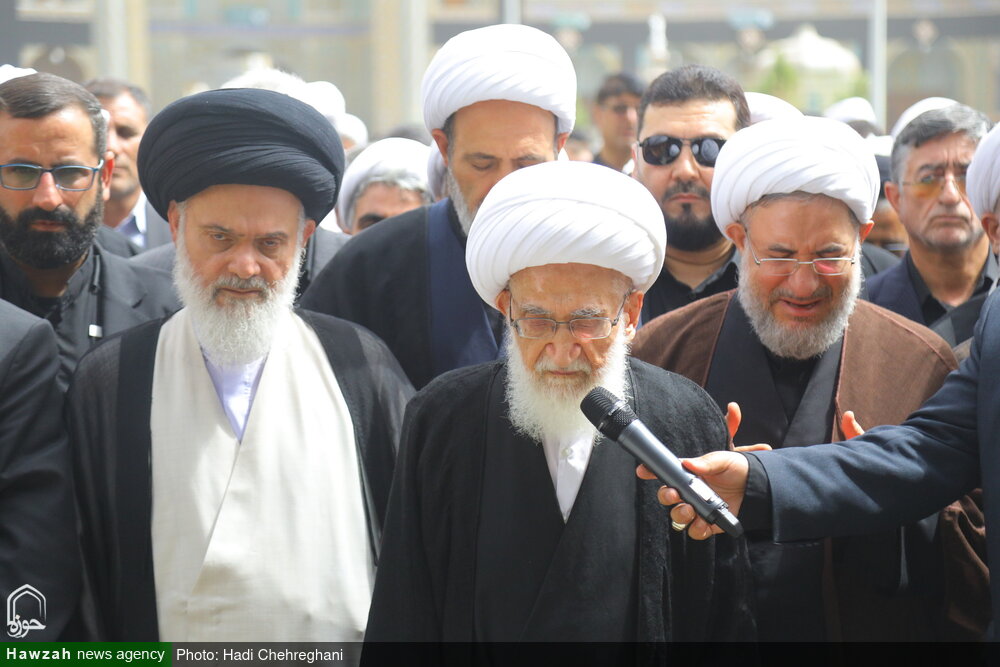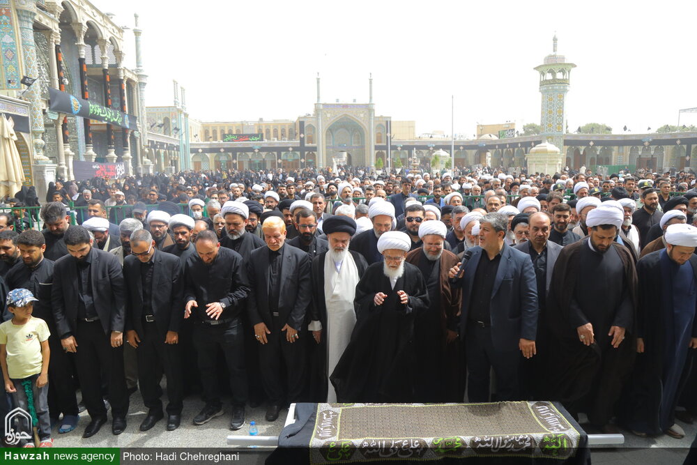 مراسم تشییع پیکر همسر آیت الله اراکی با اقامه نماز بر پیکر مرحومه بانو علویه میرمهدی توسط آیت الله العظمی نوری همدانی برگزار شد.