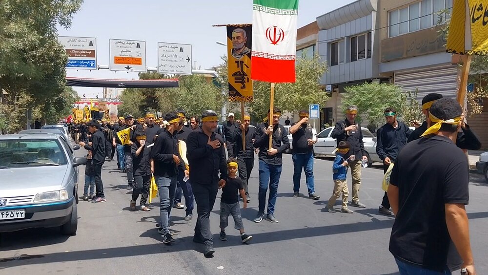 هییات فرهنگی محبان اهل بیت(ع) ناجی آباد کاشان با راه اندازی دسته عزای تاسوعای حسینی همراه با حجاب و عفاف مسیر ۲ کیلومتری میدان امام حسین تا پانخل کاشان را طی نمودند.