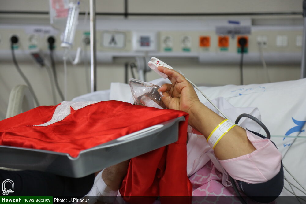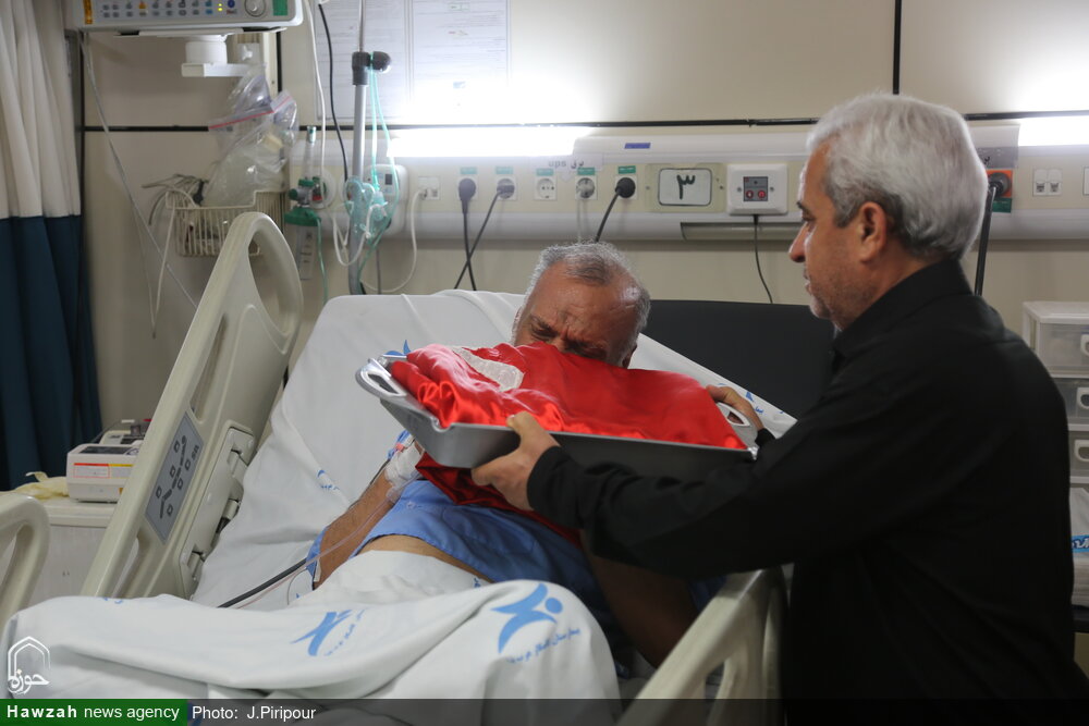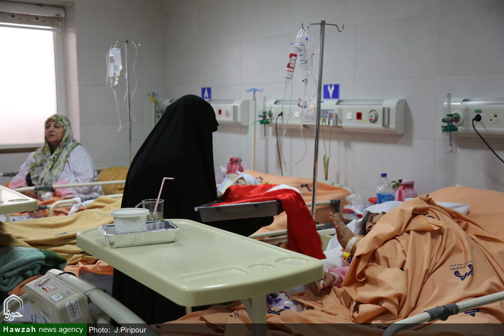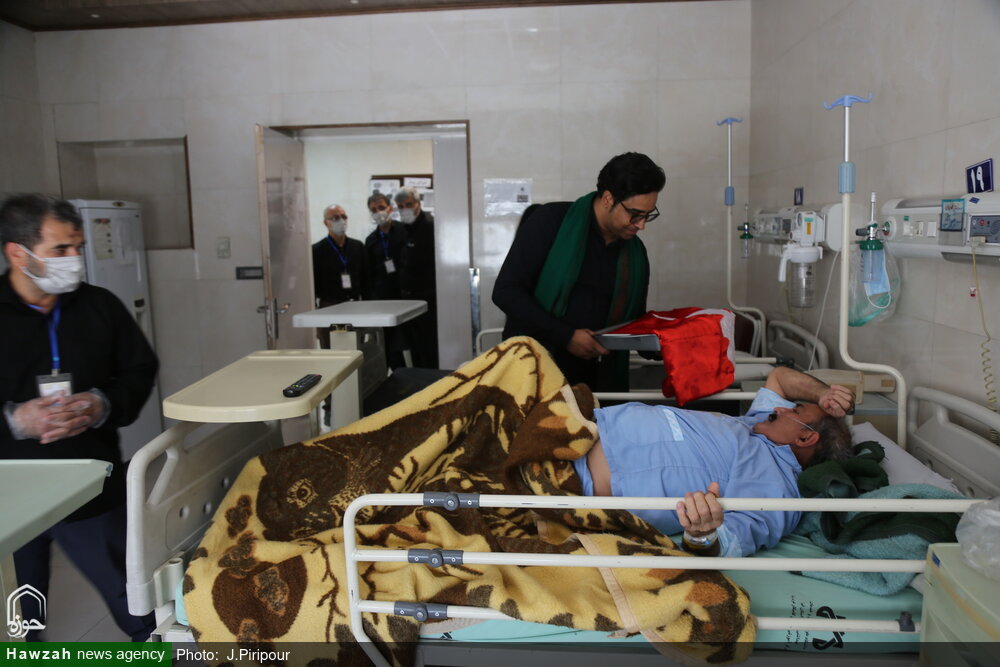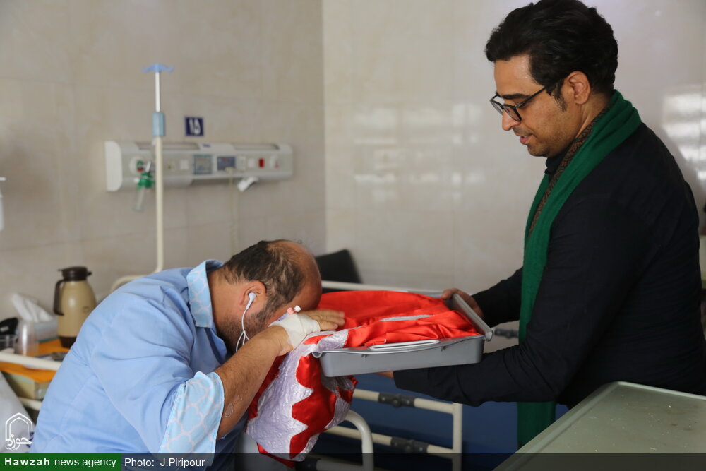 به مناسبت عاشورای حسینی جمعی از خادمان هئیت فاطمیون با حضور در بیمارستان کامکار قم از بیماران بستری در این مرکز درمانی عیادت کردند.