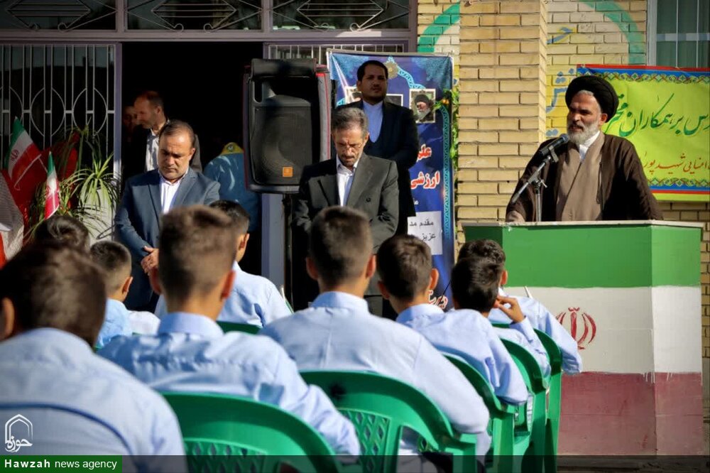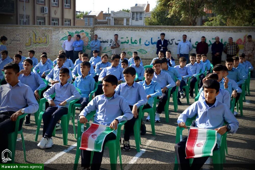حوزه/ مراسم نواختن زنگ آغاز سال تحصیلی جدید با حضور امام جمعه و فرماندار سلماس در مدرسه شهید پوریان این شهرستان برگزار شد.