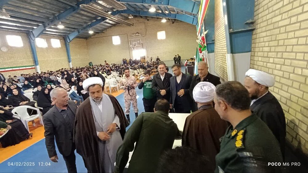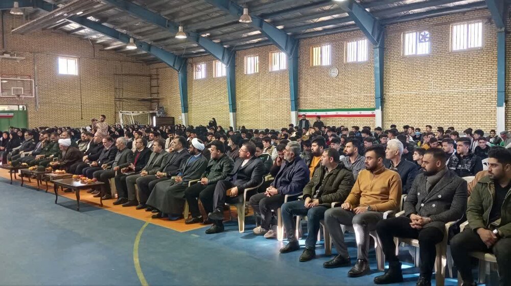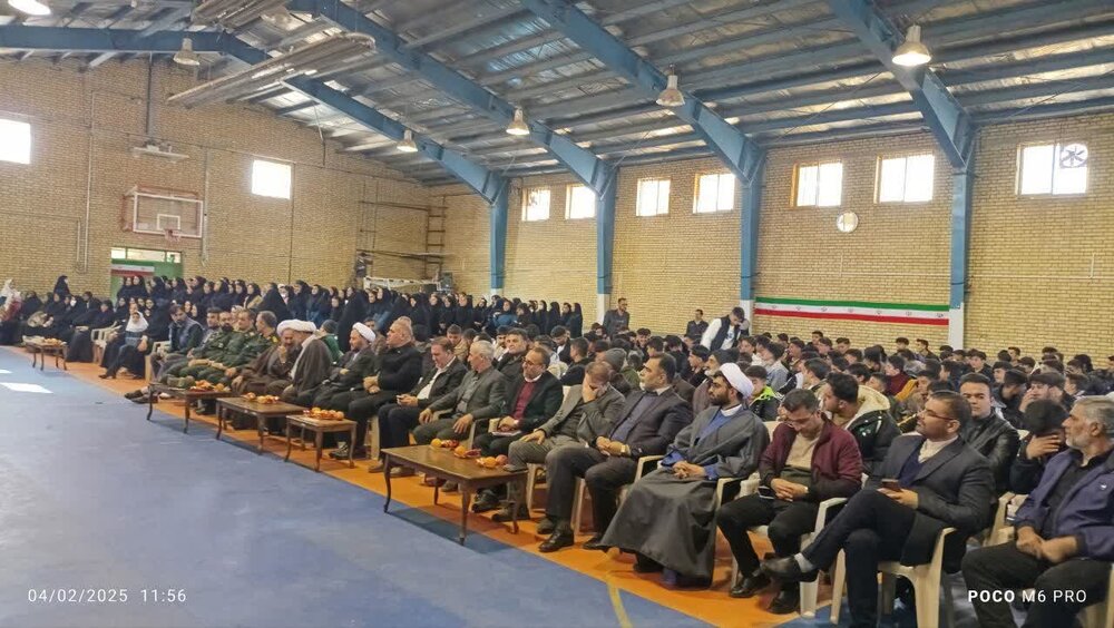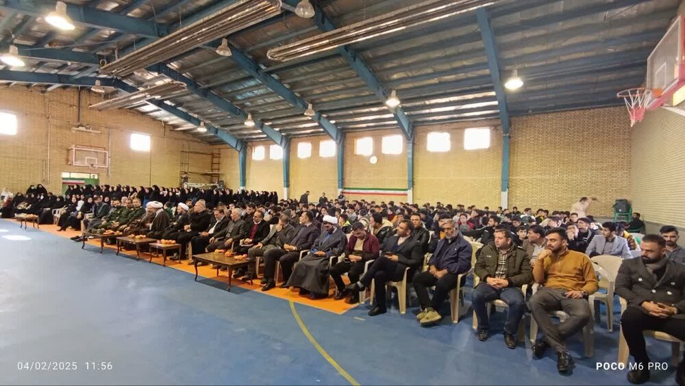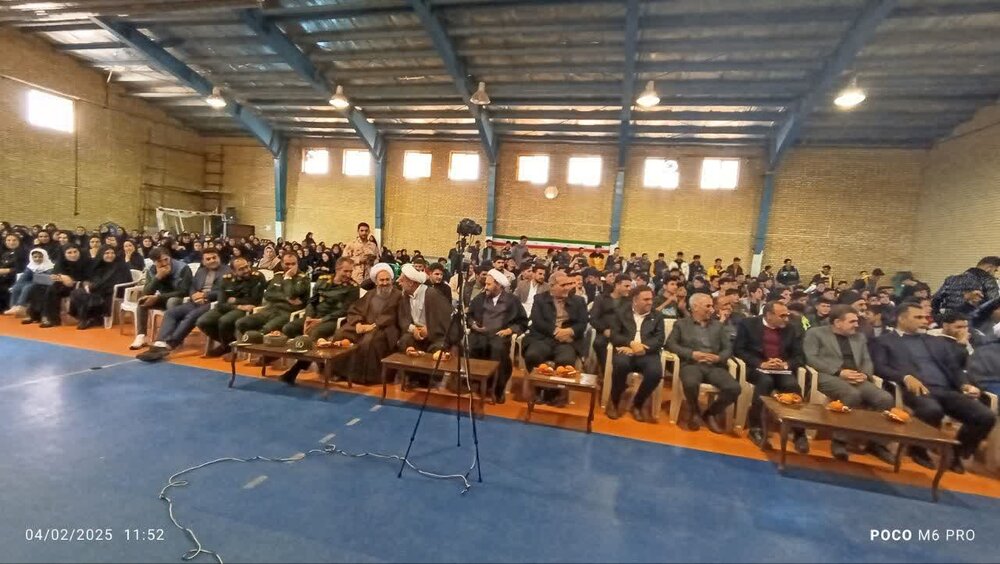 حوزه/ مراسم جشن ایام الله دهه فجر و چهل و ششمین سالگرد پیروزی انقلاب اسلامی با سخنرانی حجت الاسلام علی بابایی امام جمعه شهر کشاورز در سالن ورزشی ۹ دی این شهر برگزار شد.