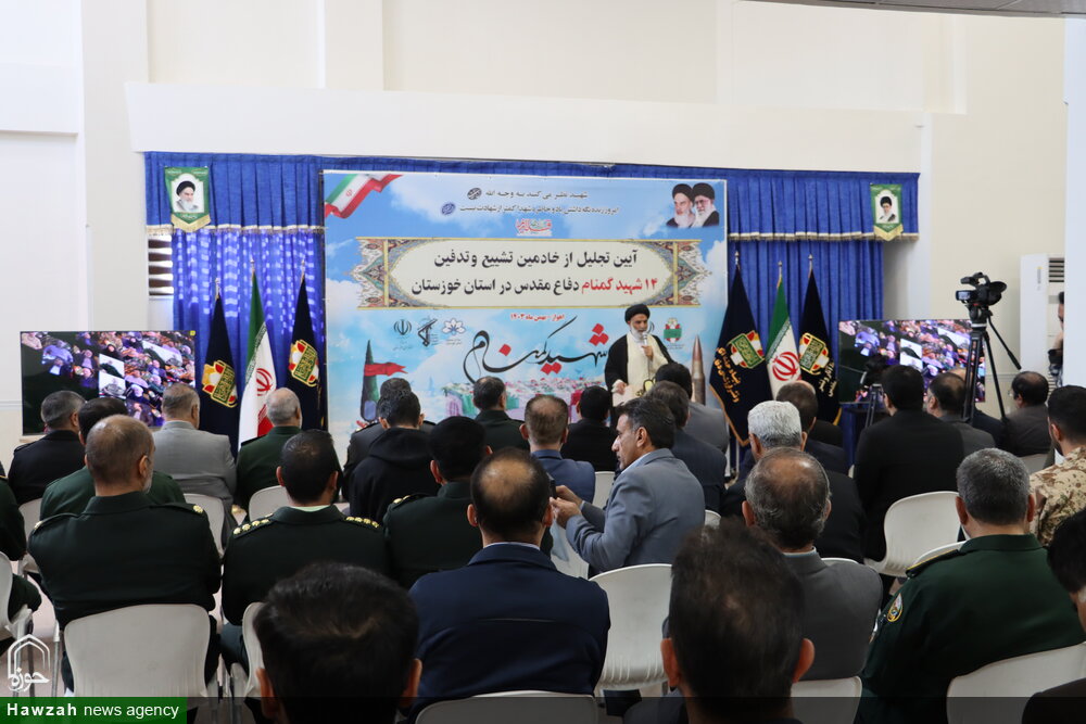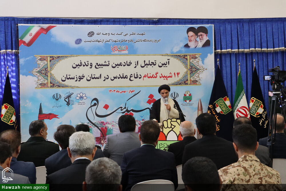 آیین تجلیل از خادمین تشییع و تدفین ۱۴ شهید گمنام دفاع مقدس در خوزستان باحضور نماینده ولی فقیه در خوزستان، استاندار و جمعی از مسئولان استانی برگزار شد.