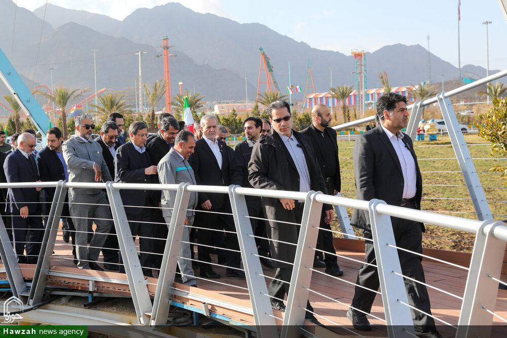 حوزه/ پزشکیان از بخشهای مختلف دهکده گردشگری گوهرپارک، از جمله یادمان دفاع مقدس این مجموعه بازدید کرد و با توضیحات دستاندرکاران از جزئیات اجرا و فعالیت قسمتهای مختلف آن مطلع شد.