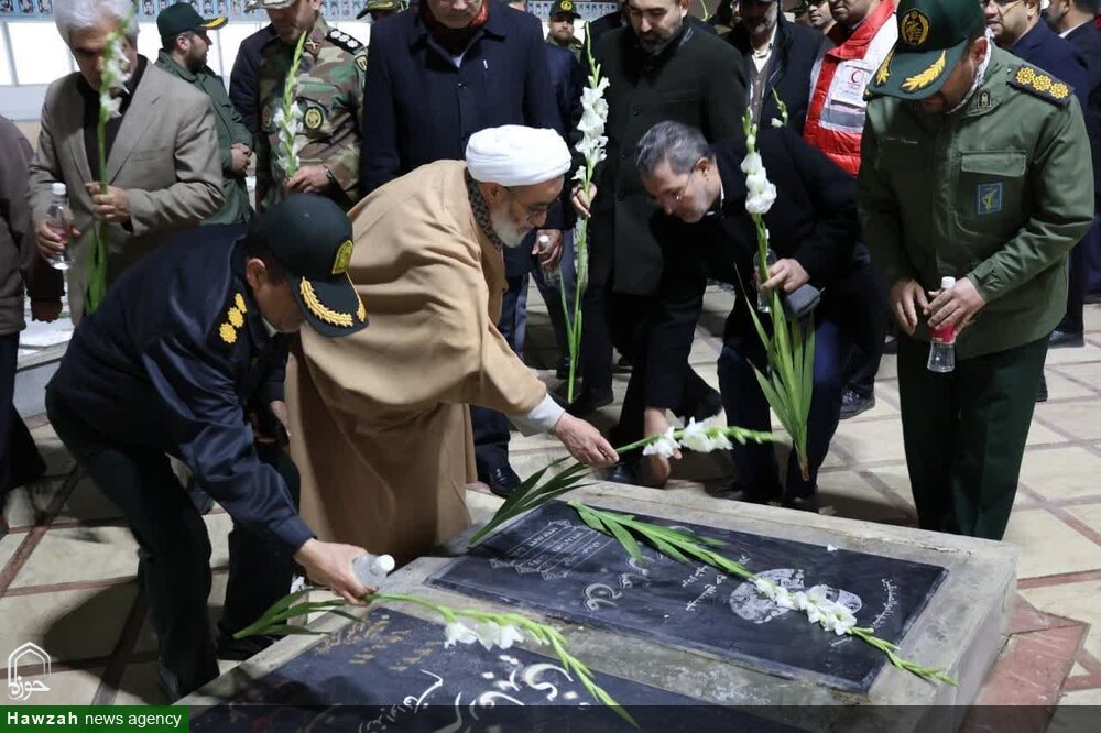حوزه/ مراسم عطرافشانی و غباروبی گلزار شهدا به مناسبت ایام دهه فجر انقلاب اسلامی و گرامیداشت یاد و خاطره شهدای گرانقدر با حضور امام جمعه شهرستان مرند در گلزار شهدای مرند برگزار شد.