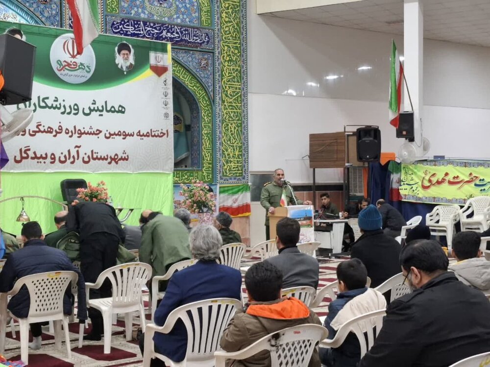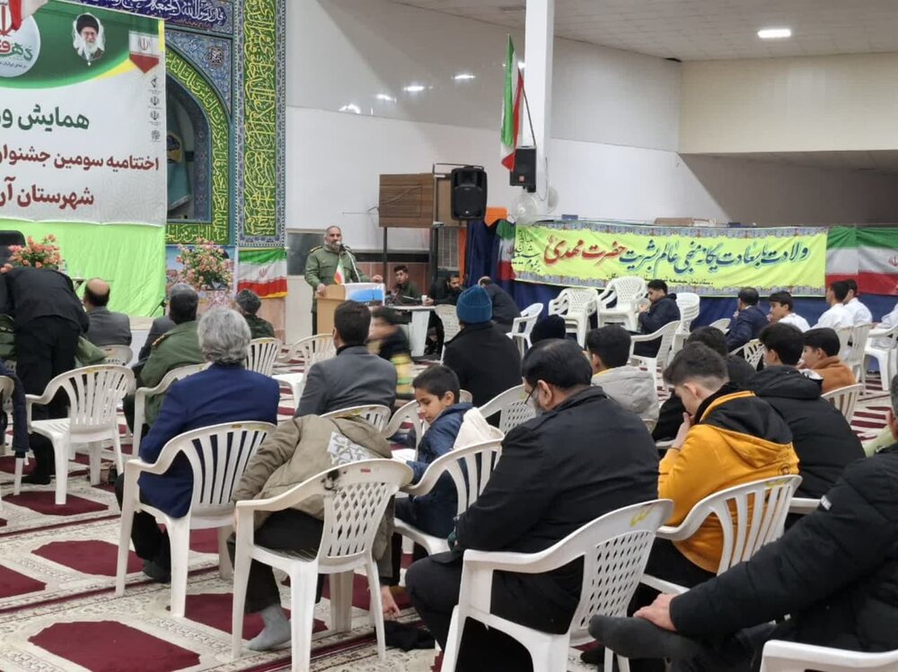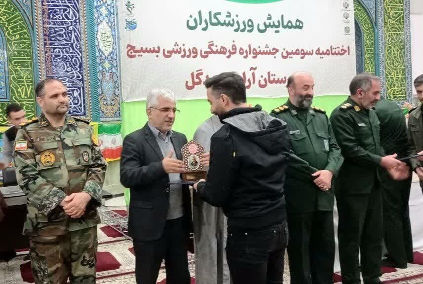 همزمان با چهلوششمین سالگرد پیروزی انقلاب اسلامی؛ مراسم اختتامیه سومین جشنواره فرهنگی ورزشی بسیج با حضور امام جمعه، فرماندار، مسئول سازمان ورزش بسیج کشور، فرمانده ناحیه مقاومت بسیج سپاه، ورزشکاران و جمعی از مسئولان استانی و شهرستانی در محل مصلی نمازجمعه برگزار شد.