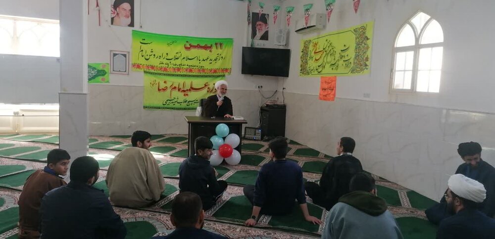 حوزه/جشن چهل و ششمین سالگرد پیروزی شکوهمند انقلاب اسلامی ایران روز گذشته در مدرسه علمیه امام رضا(ع)شهرستان پلدختر، توسط پایگاه مقاومت بسیج طلاب شهید رحیمی مدرسه علمیه برگزار شد.