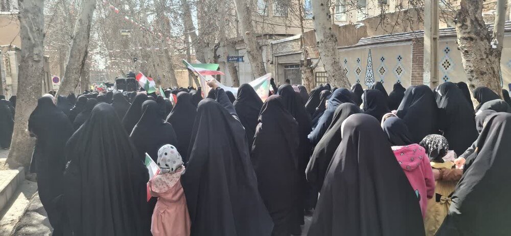 حضور پرشور طلاب و اساتید وکادر مدرسه علمیه فاطمیه سلام الله علیها در کنار مردم شهید پرور شهرستان محلات و تجدید میثاق با ولی امر مسلمین حضرت آیت الله خامنه ای در راهپیمایی۲۲ بهمن.