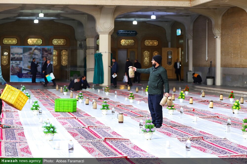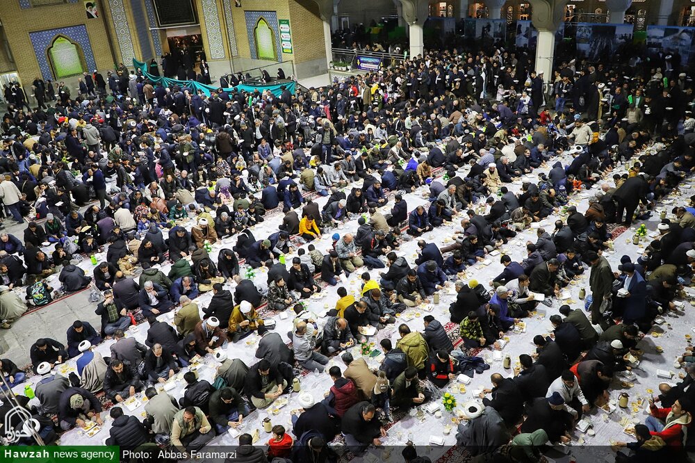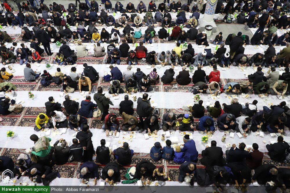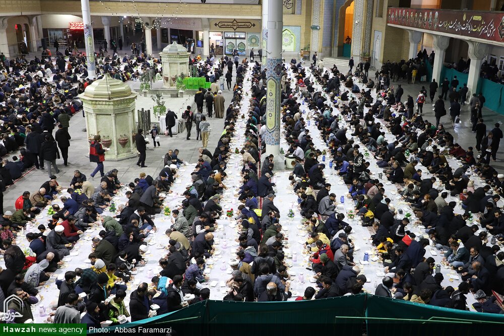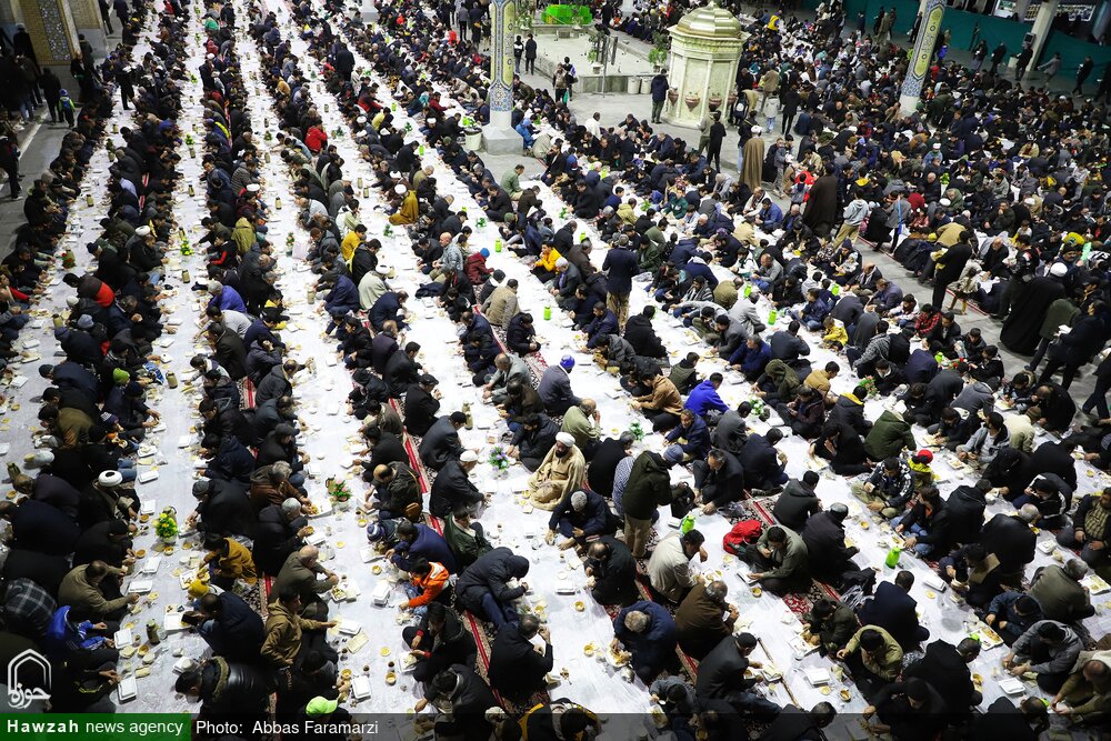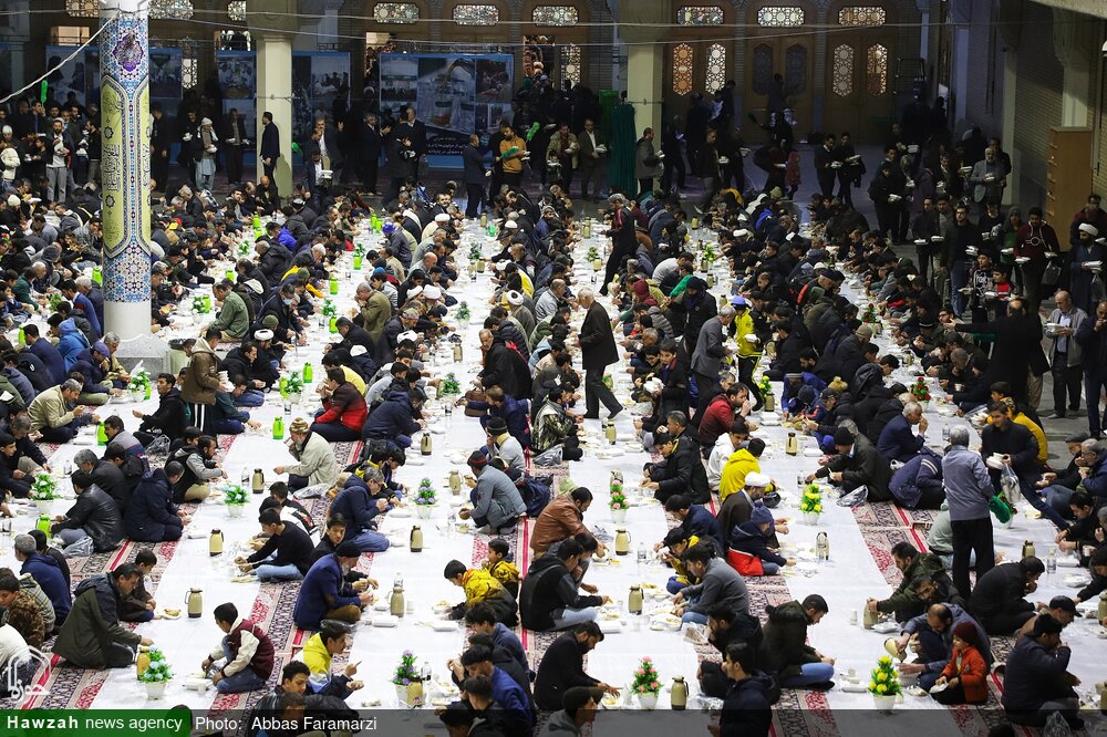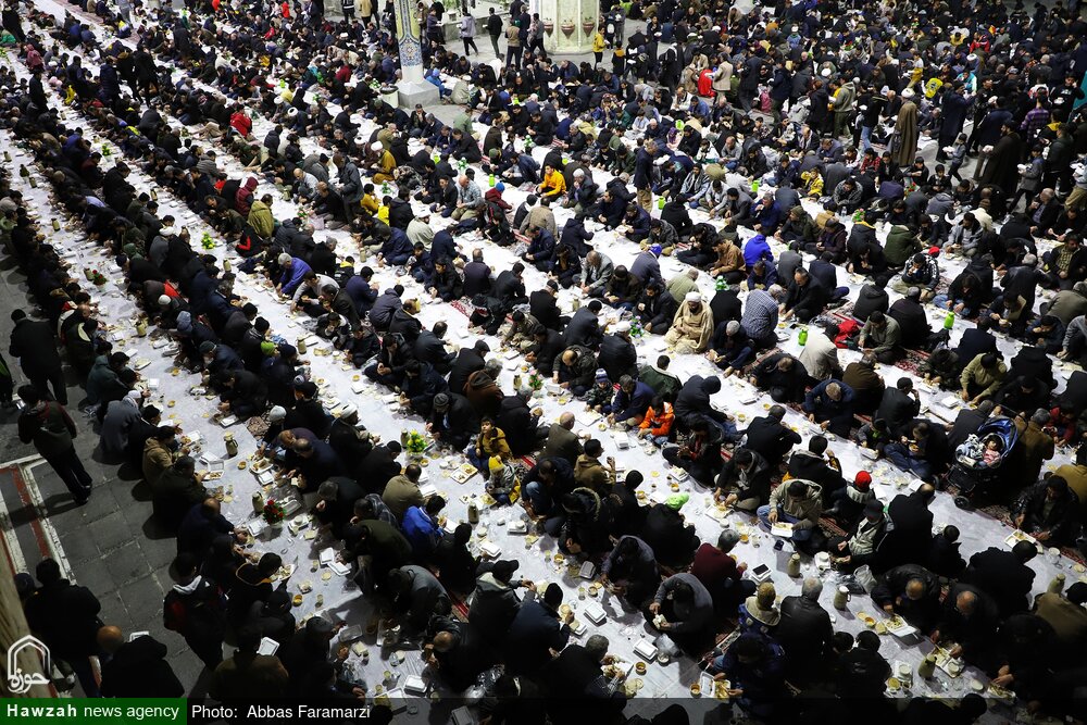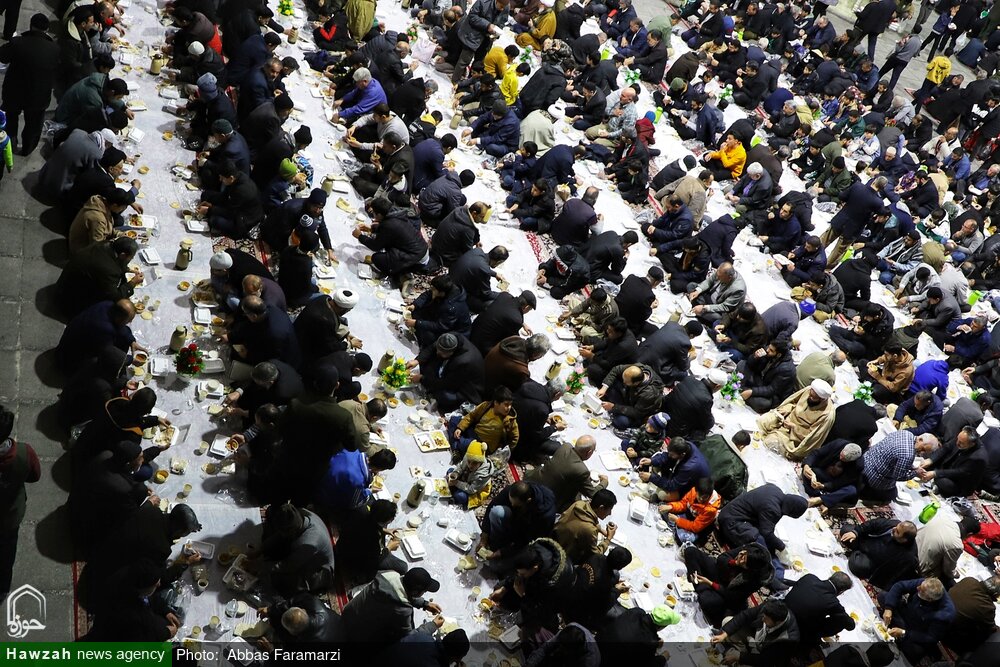 اطعام بیش از ۱۰ هزار زائر روزه‌دار هرشب بر خوان با کرامت حرم مطهر حضرت معصومه سلام‌الله‌علیها