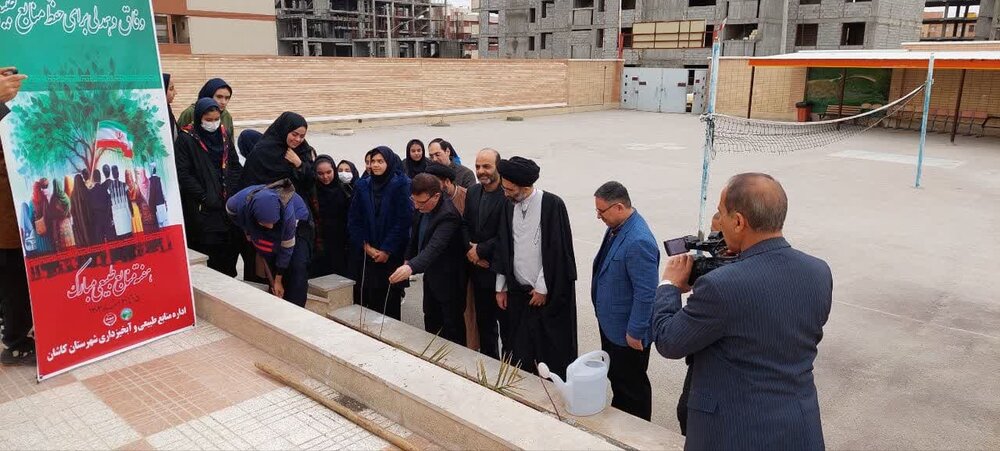 به مناسبت روز درختکاری، نماینده ولی فقیه درکاشان به همراه معاون آموزش متوسطه، روابط عمومی آموزش و پرورش و دانش آموزان، چندین نهال در محوطه دبیرستان دخترانه حاج جعفر یزدانیان غرس کردند.