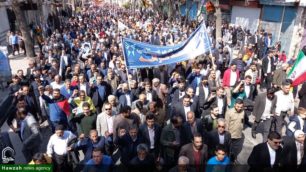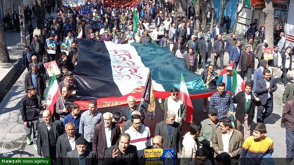 حوزه/مردم غیور مراغه امروز در حمایت از مظلومان غزه و فلسطین فریاد مرگ بر اسراییل و مرگ بر آمریکا سر دادند.