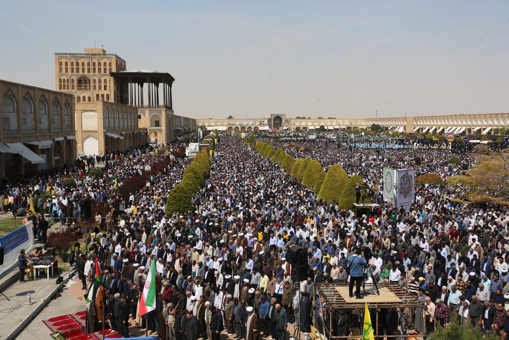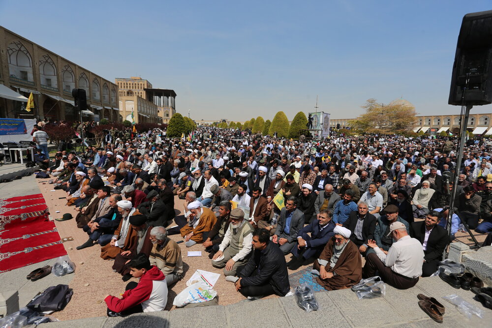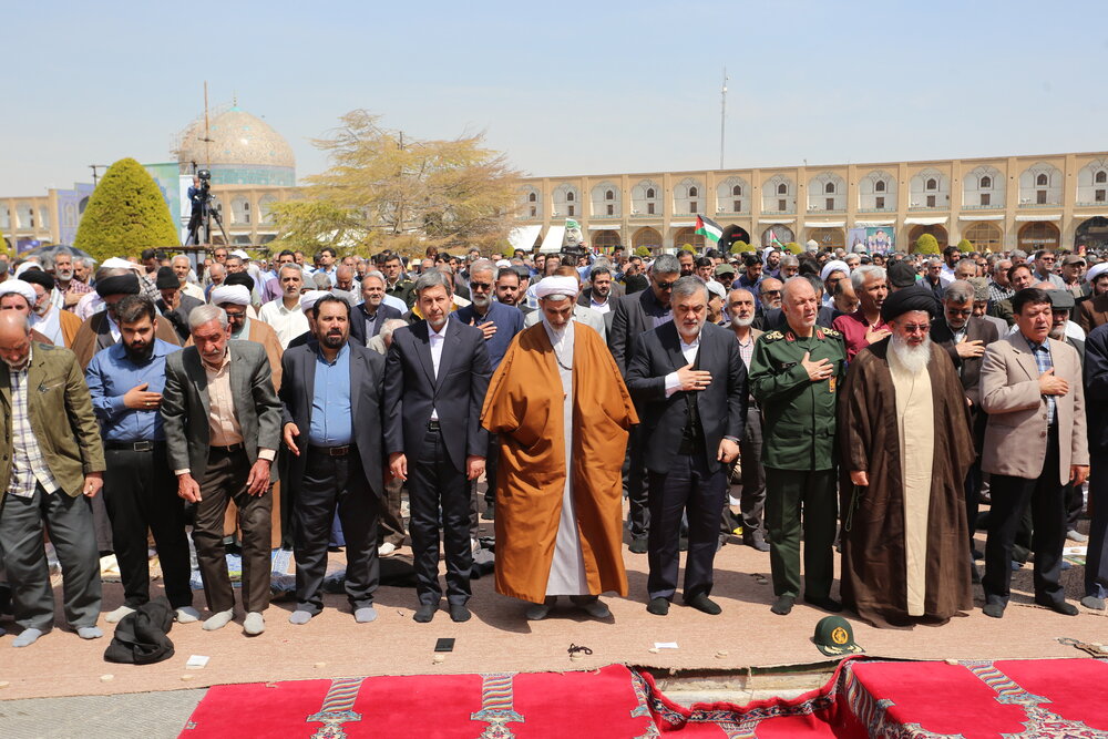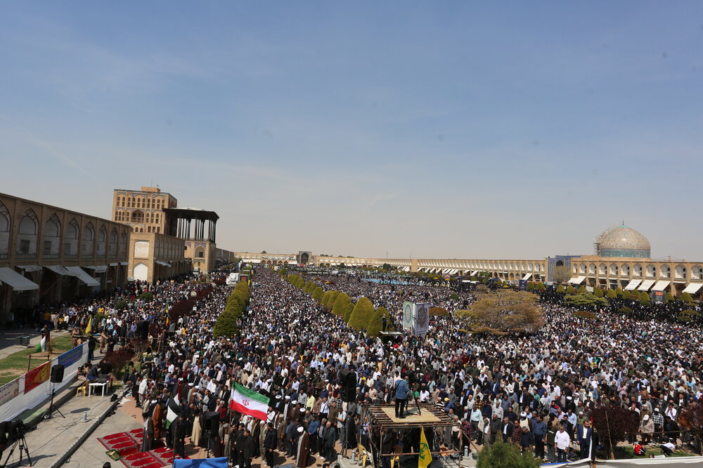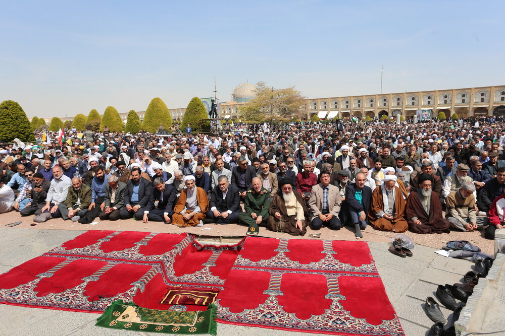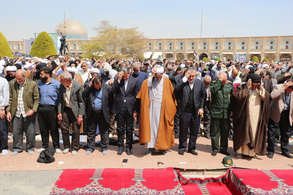 نماز عبادی سیاسی جمعه اصفهان بعد از راهپیمایی حماسی روز قدس به امامت حجت الاسلام سید احمد محمودی امام موقت جمعه اصفهان و با حضور اقشار مختلف مردم در میدان امام خمینی (ره) اصفهان برگزار شد.