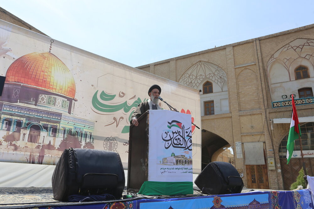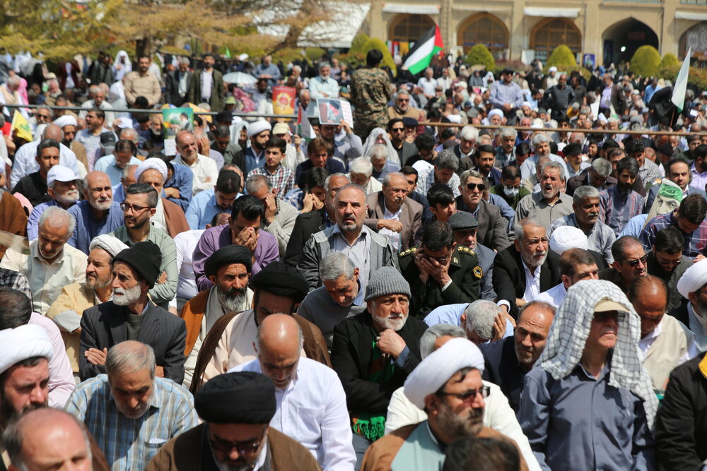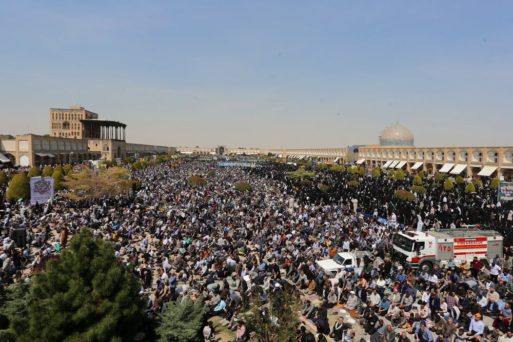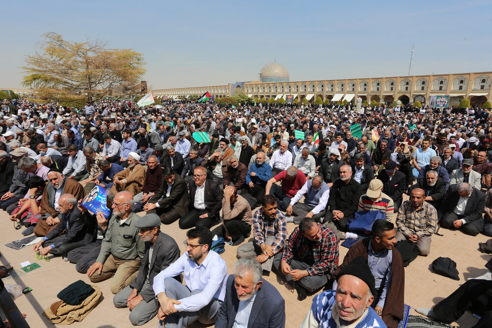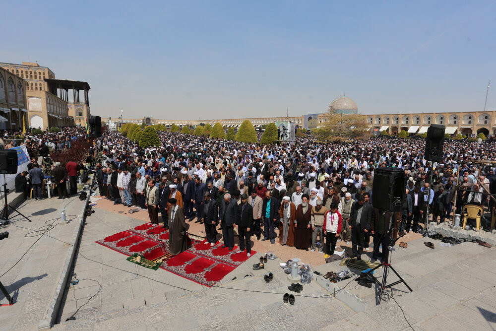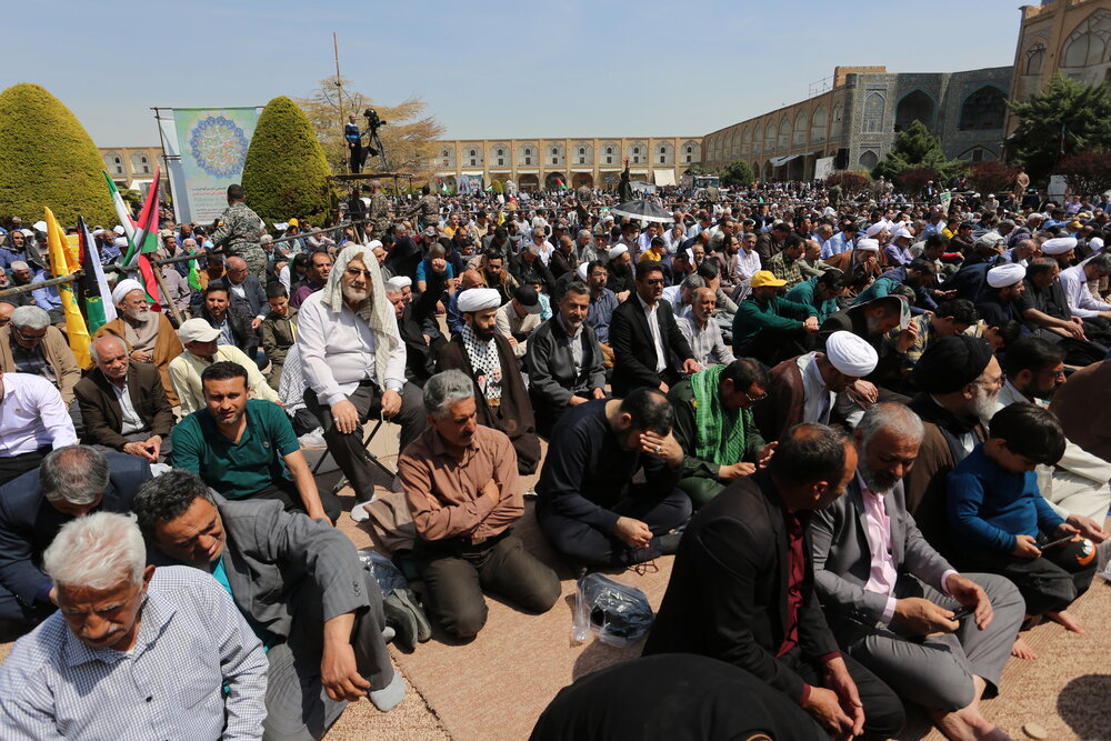 نماز عبادی سیاسی جمعه اصفهان بعد از راهپیمایی حماسی روز قدس به امامت حجت الاسلام سید احمد محمودی امام موقت جمعه اصفهان و با حضور اقشار مختلف مردم در میدان امام خمینی (ره) اصفهان برگزار شد.