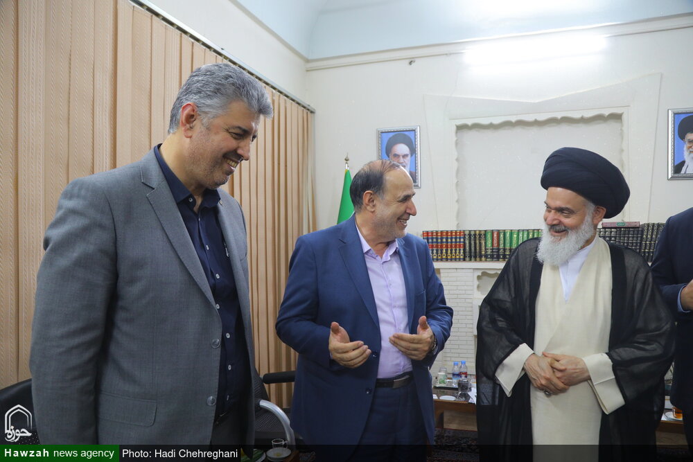 مهندس دهناد نایب رئیس هیئت مدیره مخابرات ایران و مهندس علی اصغر پور سرپرست مخابرات منطقه قم با آیت الله حسینی بوشهری دیدار کردند .