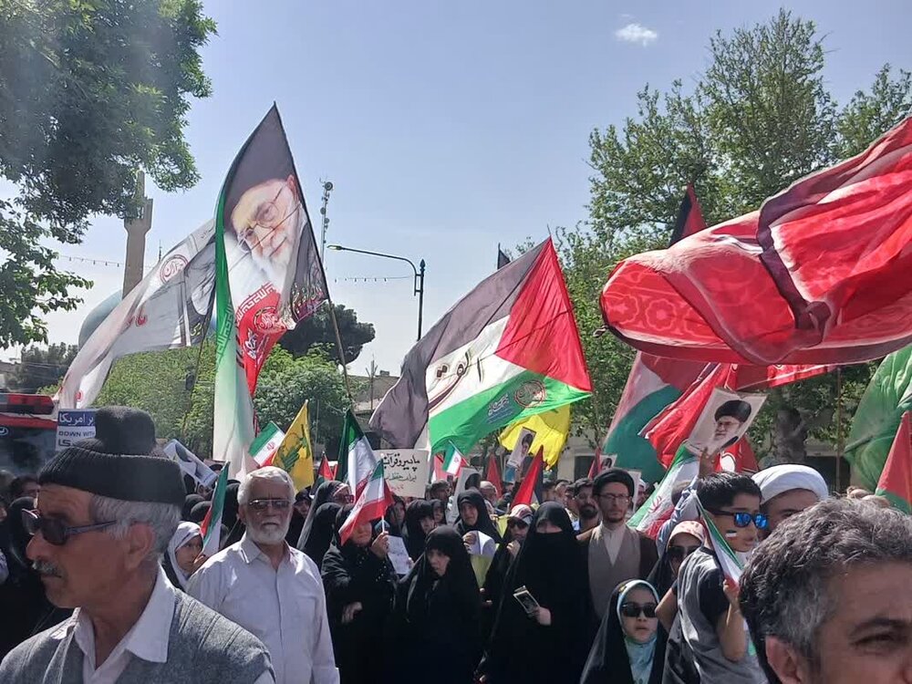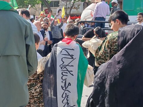 حوزه/زائران و مجاوران حضرت رضا(ع) پس از اقامه نماز جمعه امروز ۲۲ فروردین ماه در حمایت از مردم مظلوم غزه به خیابان ها آمدند و جنایت های رژیم غاصب اسرائیل را محکوم کردند.