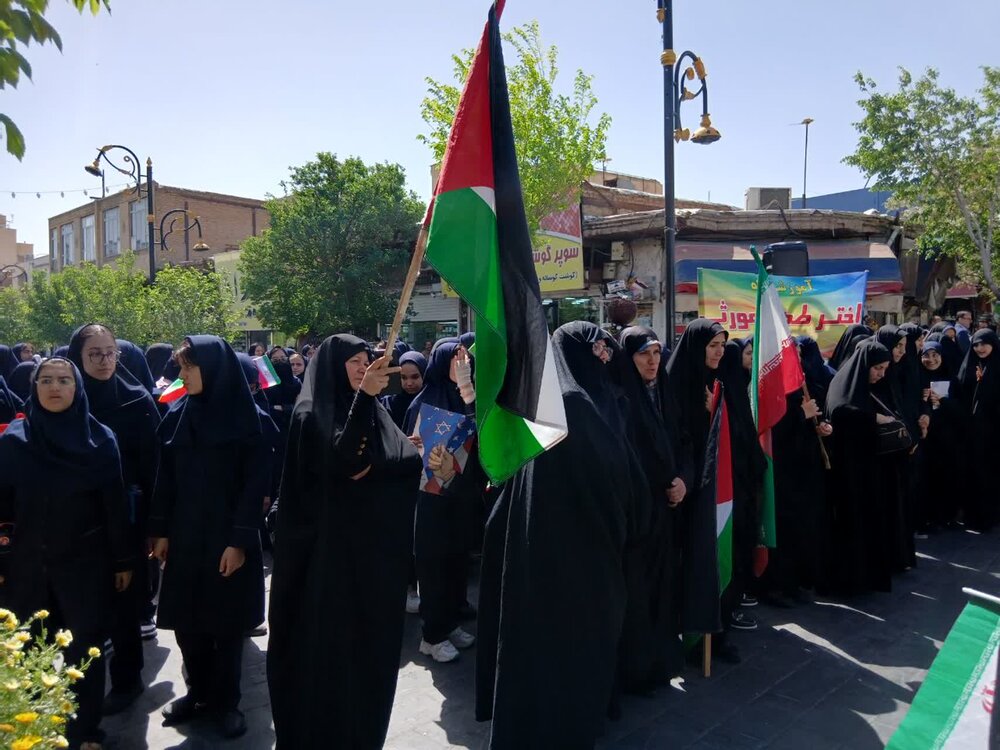 حضور مدیر، معاونین، کادر و طلاب موسسه آموزش عالی حوزوی ریحانه الرسول سلام الله علیها در اجتماع حمایت از مردم مظلوم غزه و محکومیت نسل کشی و جنایات وحشیانه رژیم غاصب صهیونیستی صبح امروز در پیاده راه امام خمینی (رحمت الله علیه)