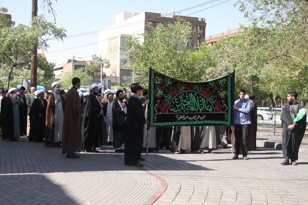 حوزه/ مراسم دسته عزاداری طلاب و روحانیون مدرسه علمیه عبدالعظیم شهر ری، به مناسبت سالروز وفات حضرت عبدالعظیم الحسنی ( ع ) که صبح امروز از میدان شهید آیت الله مدرس تا حرم حضرت عبدالعظیم ( ع ) برگزار شد.