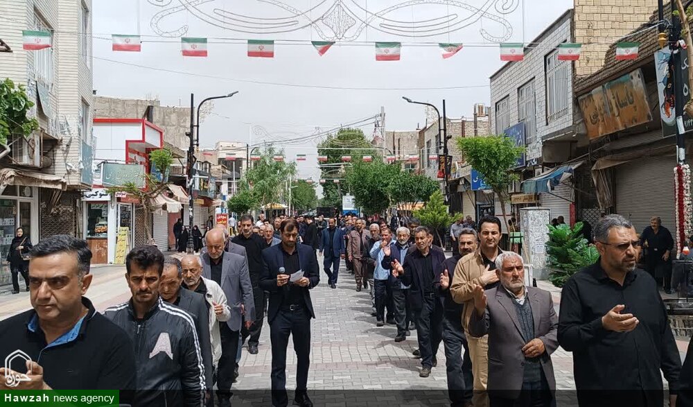 حوزه/ مراسم عزاداری خیابانی در سوگ امام جعفر صادق علیه السلام با حضور اقشار مختلف مردم ۴ اردیبهشت ماه مصادف با ۲۵ شوال در میانه برگزار شد.