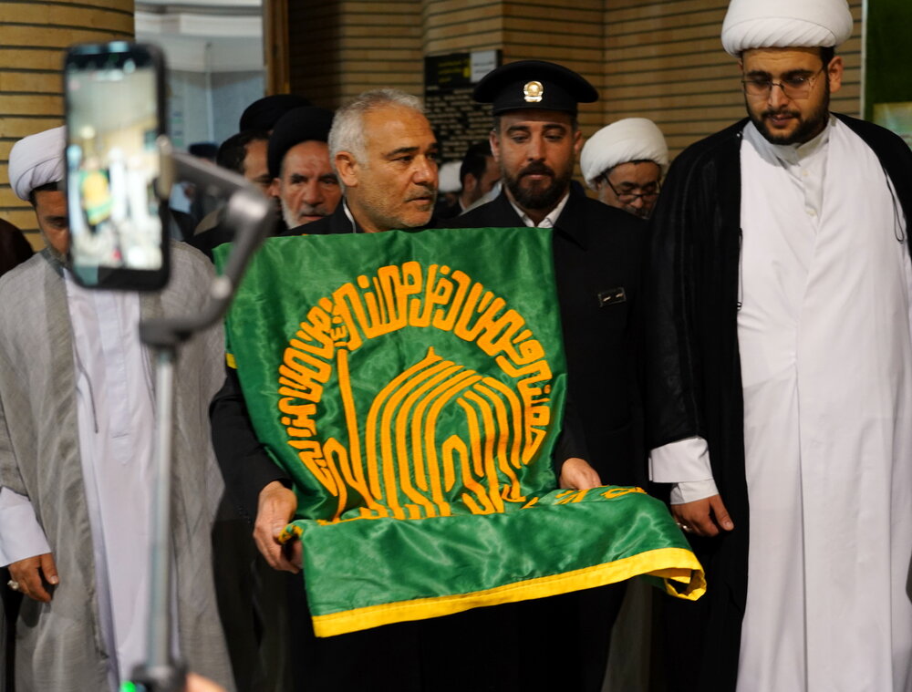 به مناسبت دهه کرامت و میلاد امام رضا(ع) آیین پرچم گردانی گنبد حرم امام رضا(ع) توسط خادمان رضوی در مجتمع فقهی ائمه اطهار قم برگزار شد.