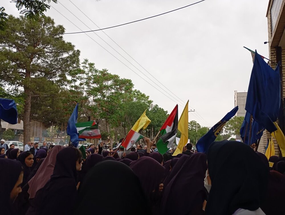 حضور طلاب، اساتید و کادر مدرسه علمیه کوثر زرندیه در تجمع محکومیت جنایات اسرائیل