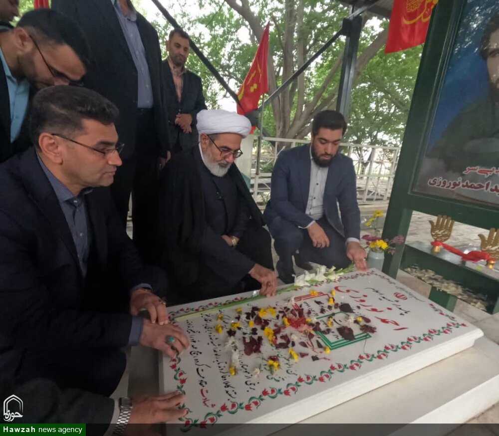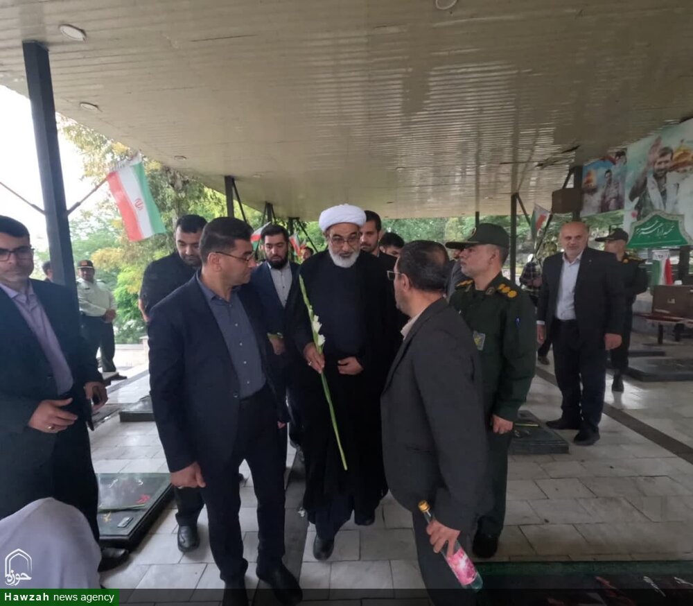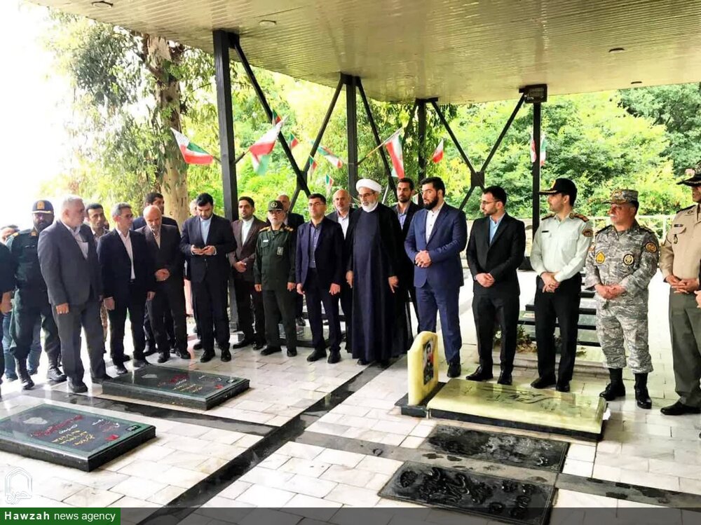 حوزه/ حجتالاسلام احمدرضا پورخاقان، عضو شورای عالی قضایی و رئیس سازمان قضایی نیروهای مسلح کشور، با حضور در گلزار شهدای شهرستان نکا، به مقام شامخ شهیدان ادای احترام و مزار آنان را عطر افشانی نمود.