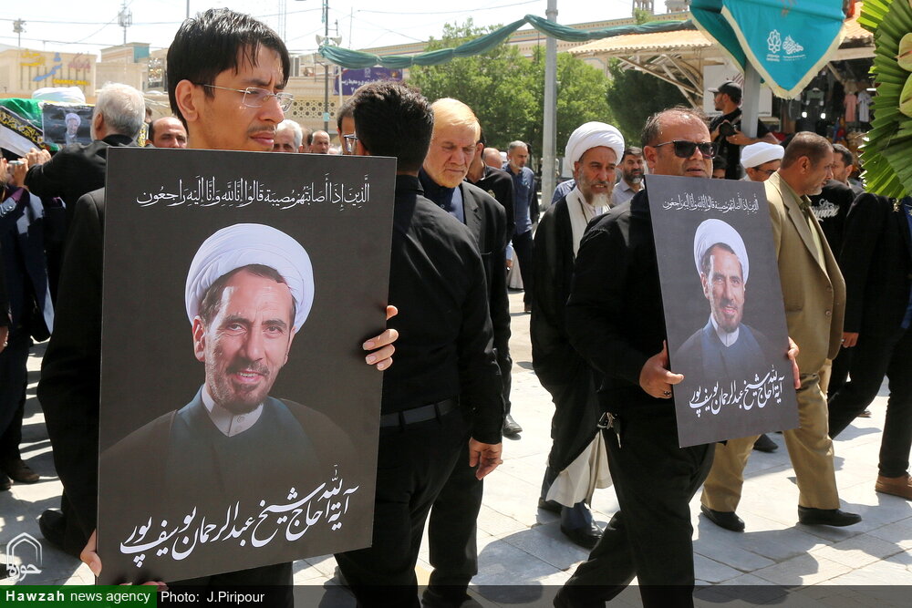 مراسم تشییع و خاکسپاری حجت الاسلام والمسلمین عبدالرحمان یوسف پور، امام جمعه موقت کیش از مسجد امام حسن عسکری علیه السلام قم به سمت حرم مطهر حضرت فاطمه معصومه سلام الله علیها برگزار و گرد مضجع شریف بانوی کرامت طواف داده شد و سپس حضرت آیت الله جعفر سبحانی از مراجع معظم تقلید شیعیان بر پیکر این عالم وارسته اقامه نماز کردند.