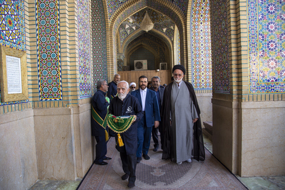 حوزه/ با حضور استاندار، فرماندار و جمعی از مسئولان اجرایی فارس آیین غبارروبی مضجع شریف سیدعلاالدین حسین(ع) برگزار شد.