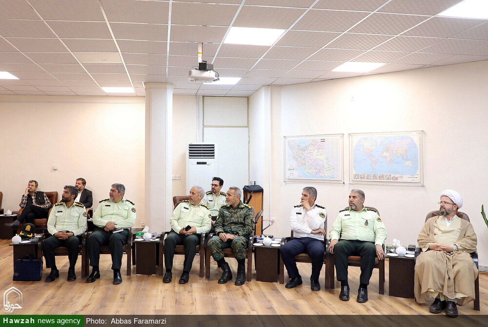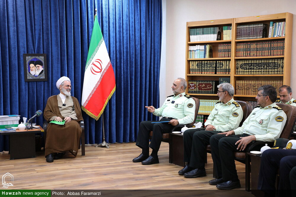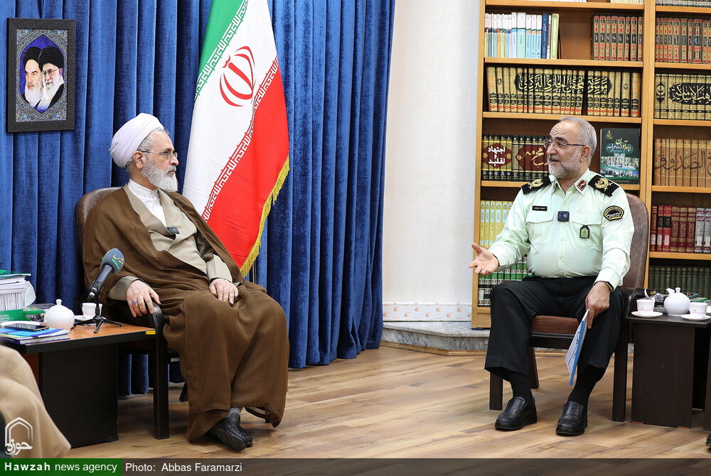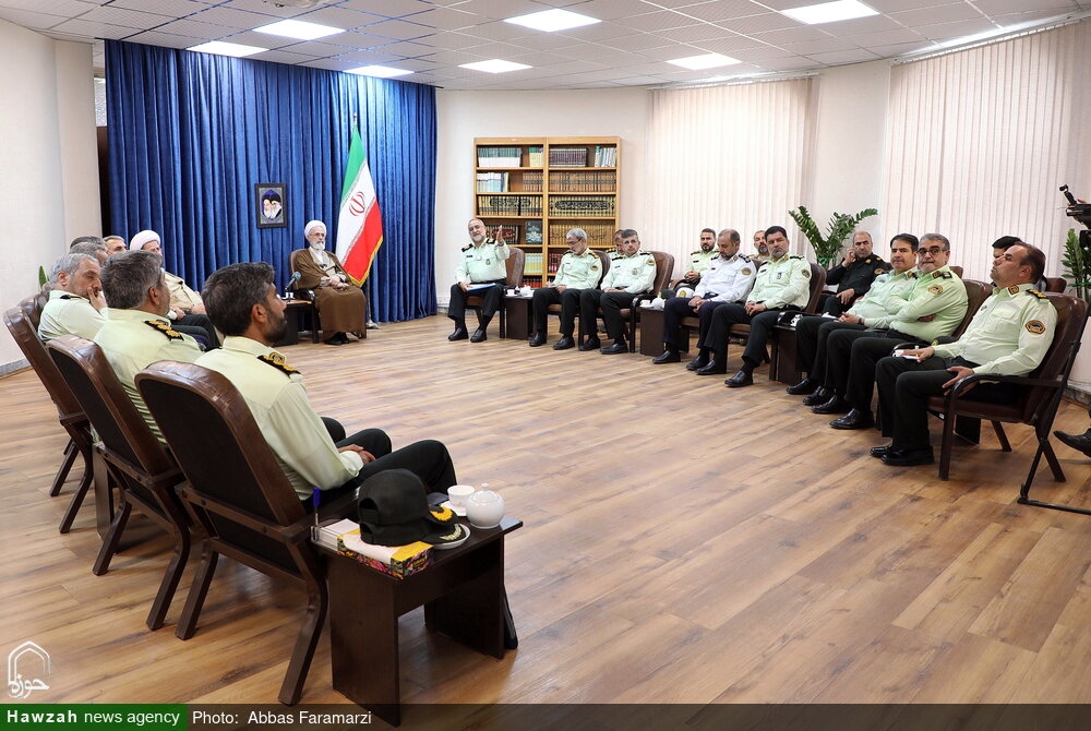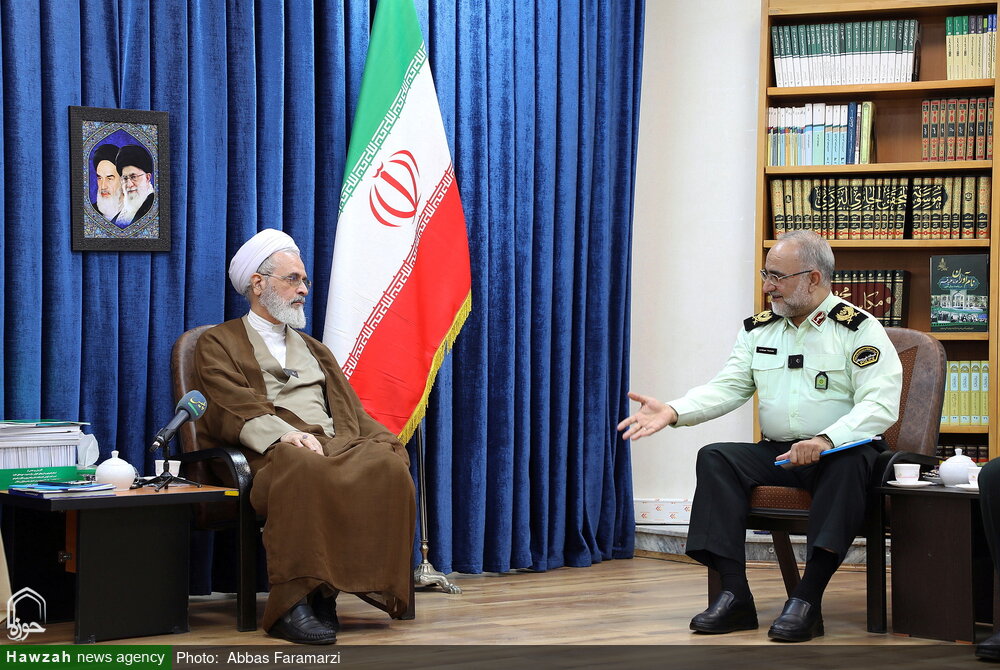 سردار میرحیدری فرمانده انتظامی استان قم بهمراه معاونان با حضور در دفتر مدیر حوزه های علمیه با آیت الله اعرافی دیدار کردند.