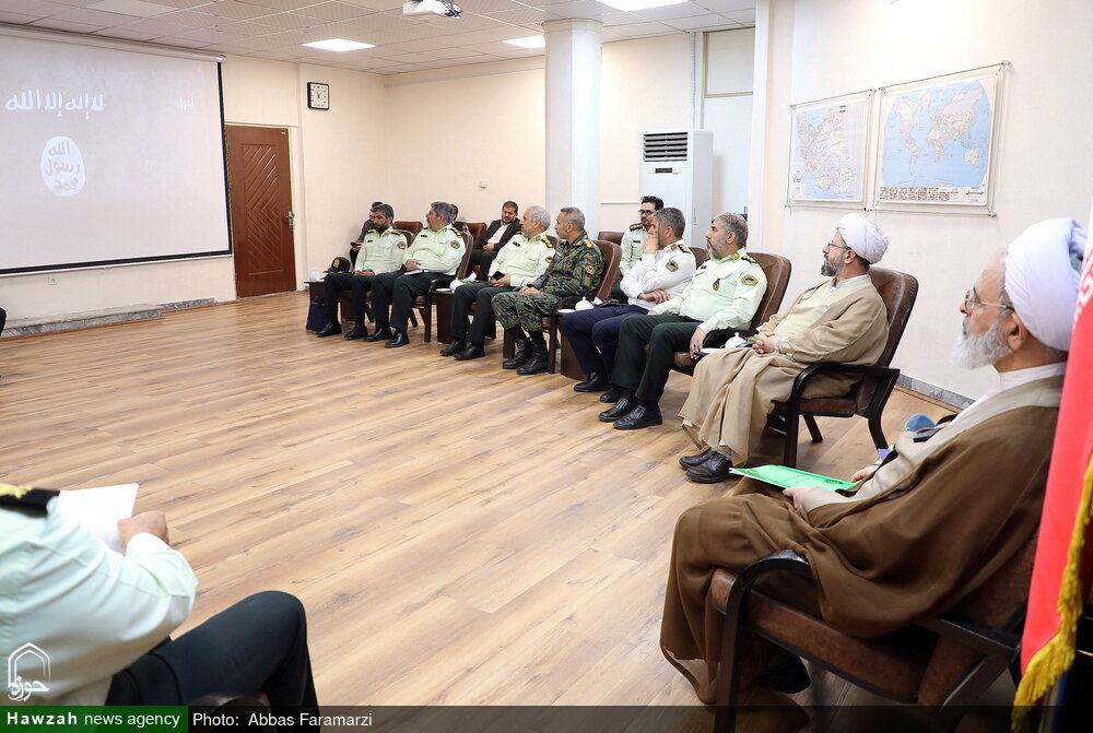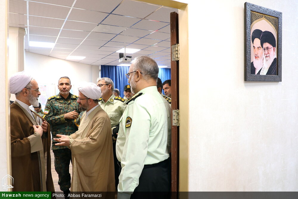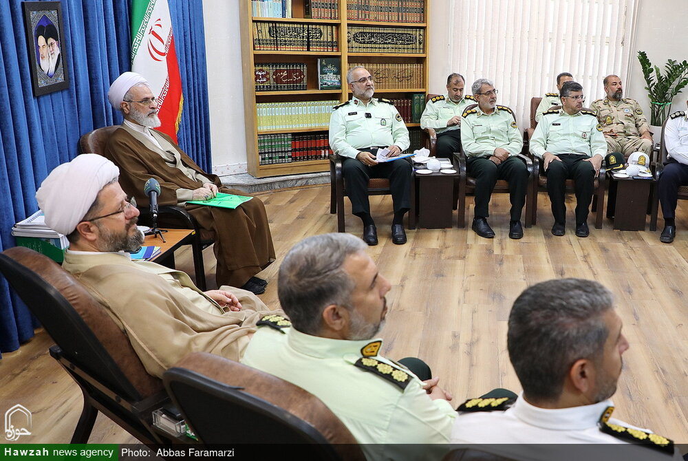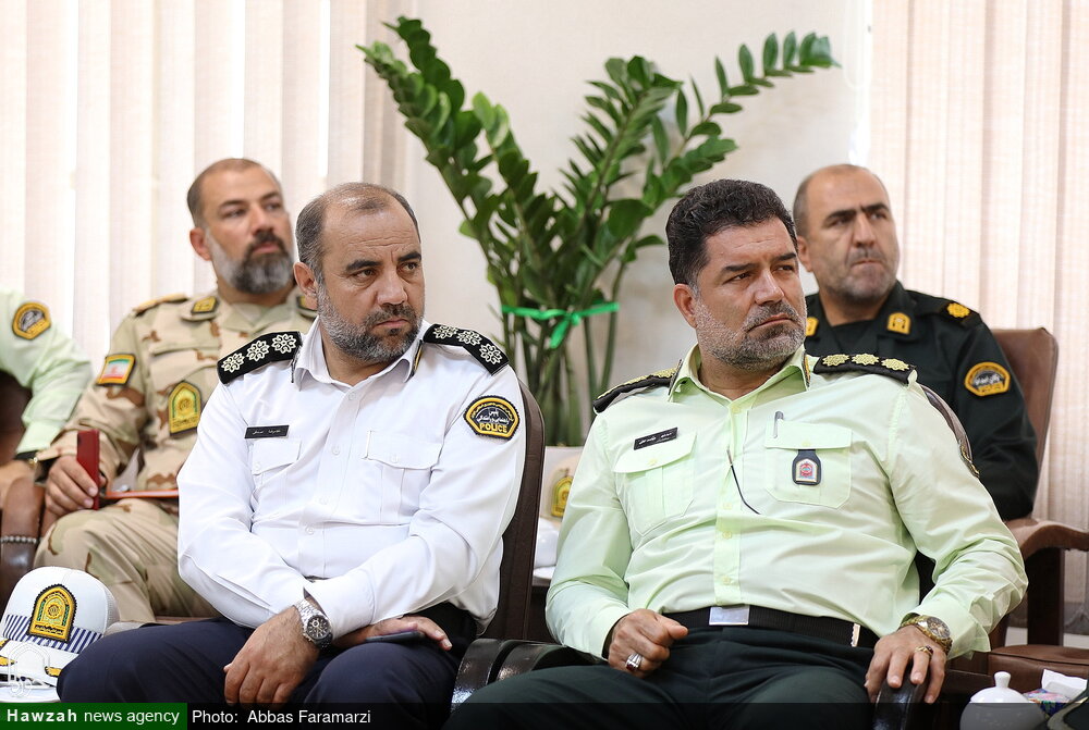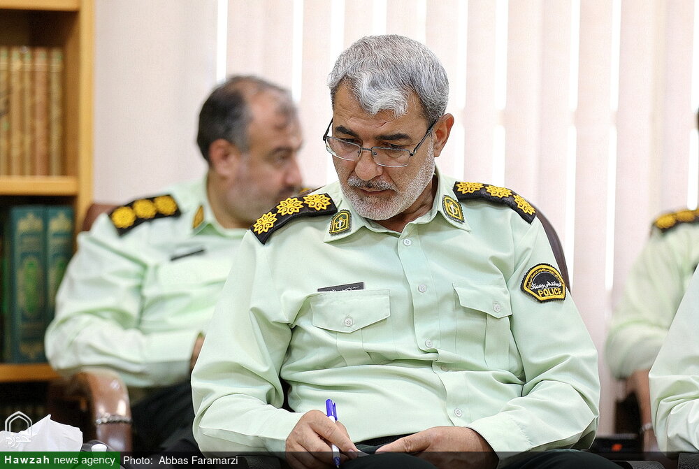سردار میرحیدری فرمانده انتظامی استان قم بهمراه معاونان با حضور در دفتر مدیر حوزه های علمیه با آیت الله اعرافی دیدار کردند.