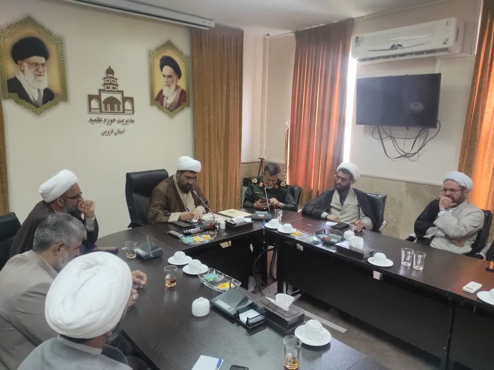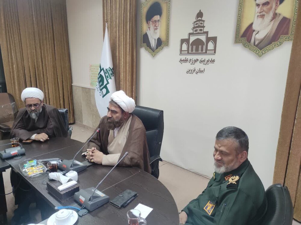 حوزه / سردار رستمعلی رفیعی آتانی (فرمانده سپاه استان قزوین ) امروز با حجت الاسلام والمسلمین اصغر عرفانی (مدیر حوزه علمیه قزوین ) ومعاونین مرکز مدیریت حوزه علمیه قزوین دیدار وگفتگو کرد