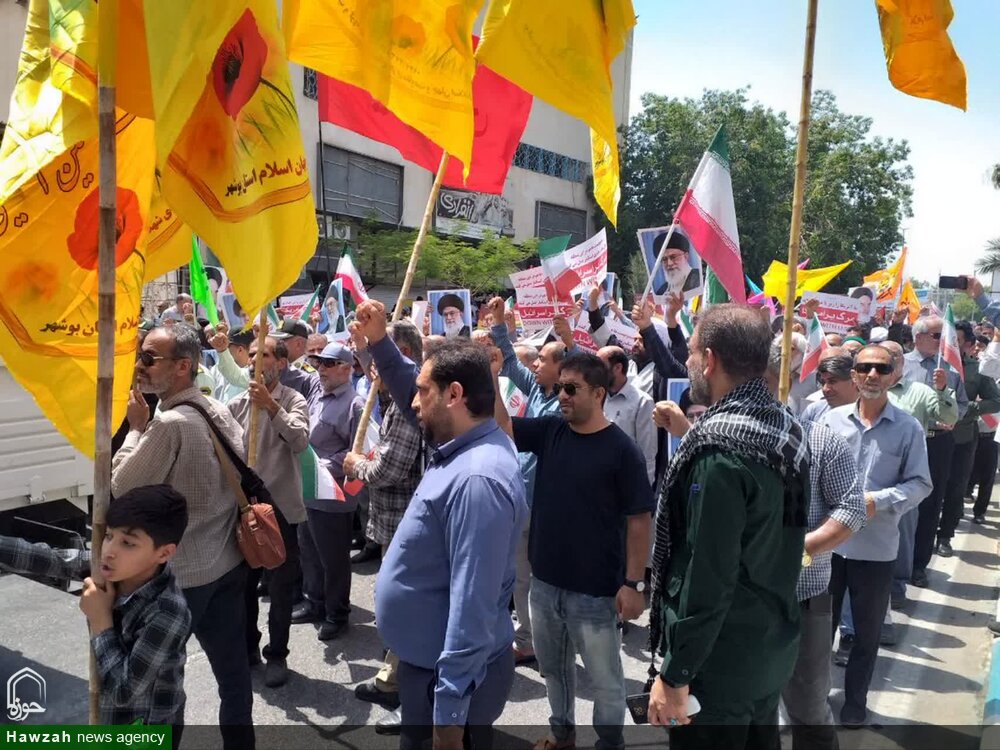 حوزه/ مردم بوشهر بعد اقامه نماز جمعه با فریاد مرگ بر آمریکا و مرگ بر اسرائیل ضمن محکوم کردن حمله رژیم صهیونیستی به ایران، فریاد انتقام سر دادند.
