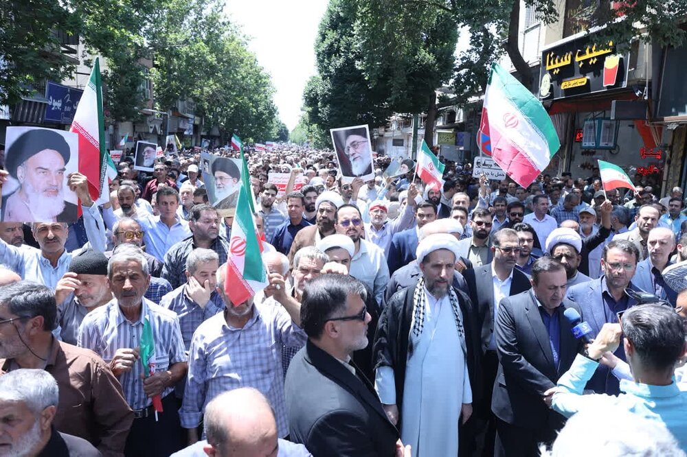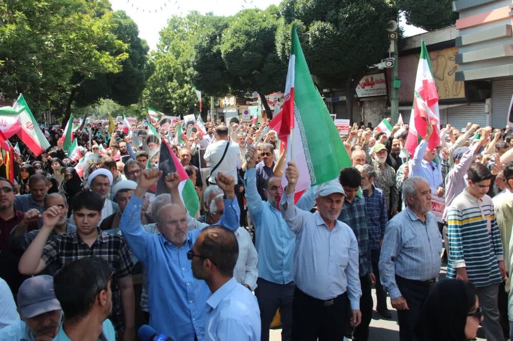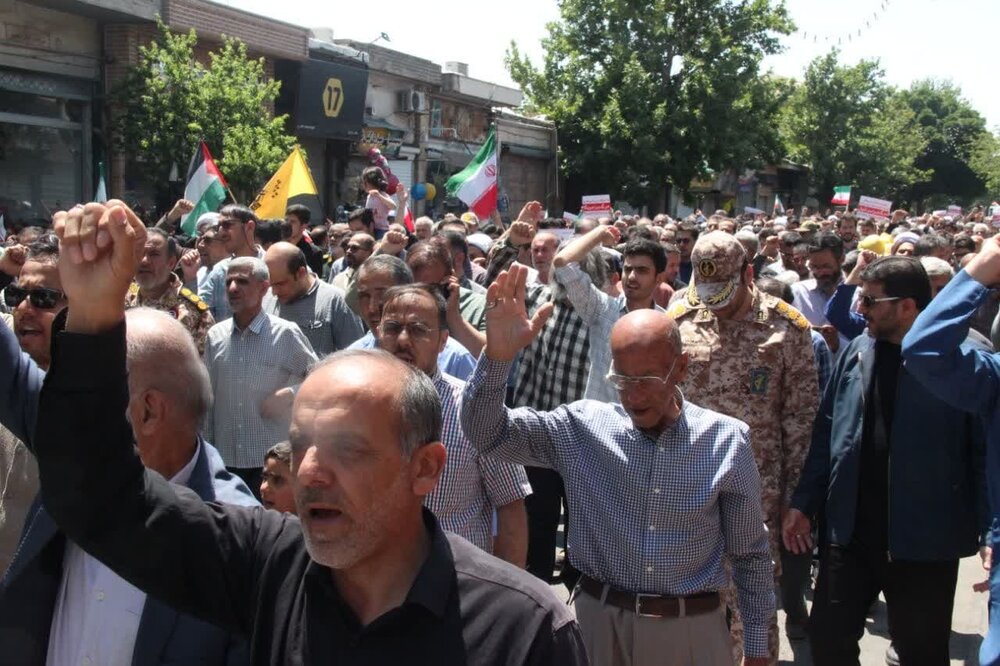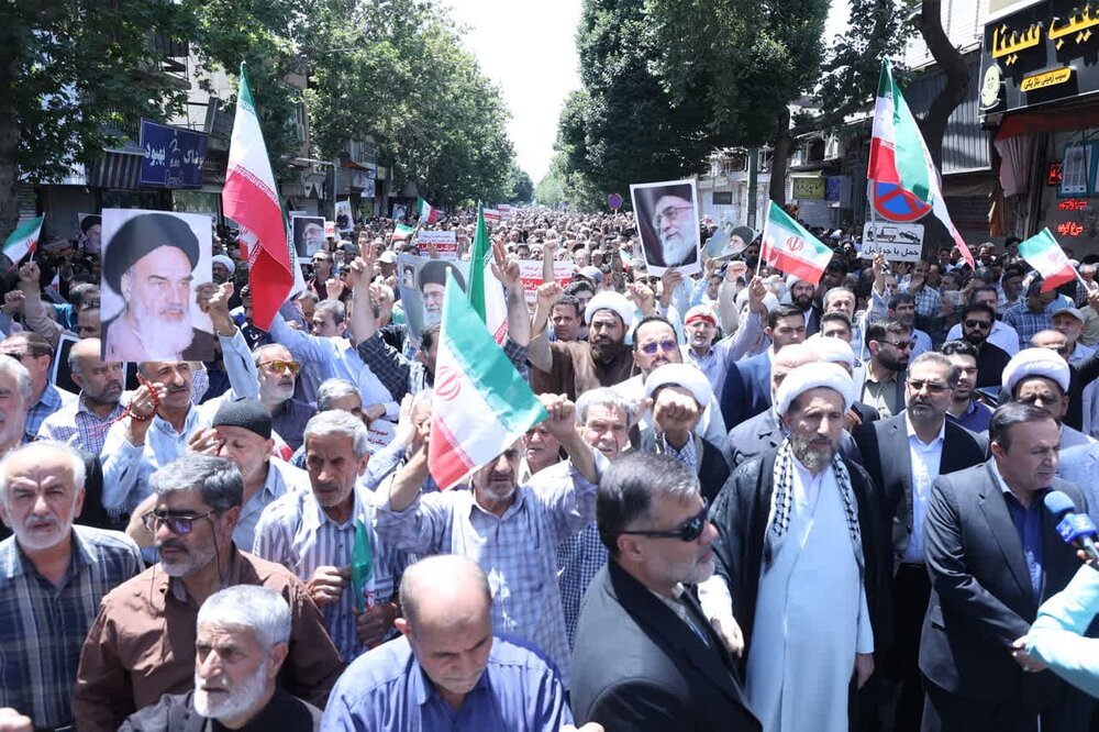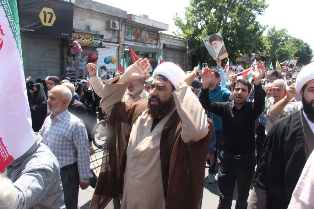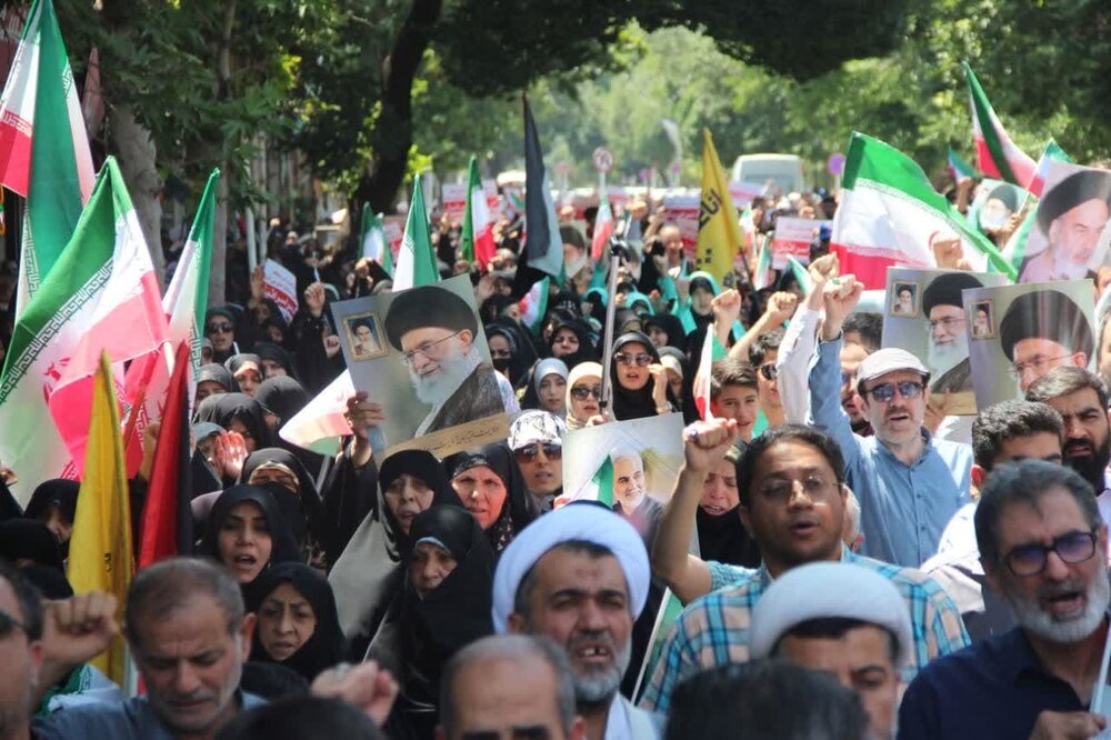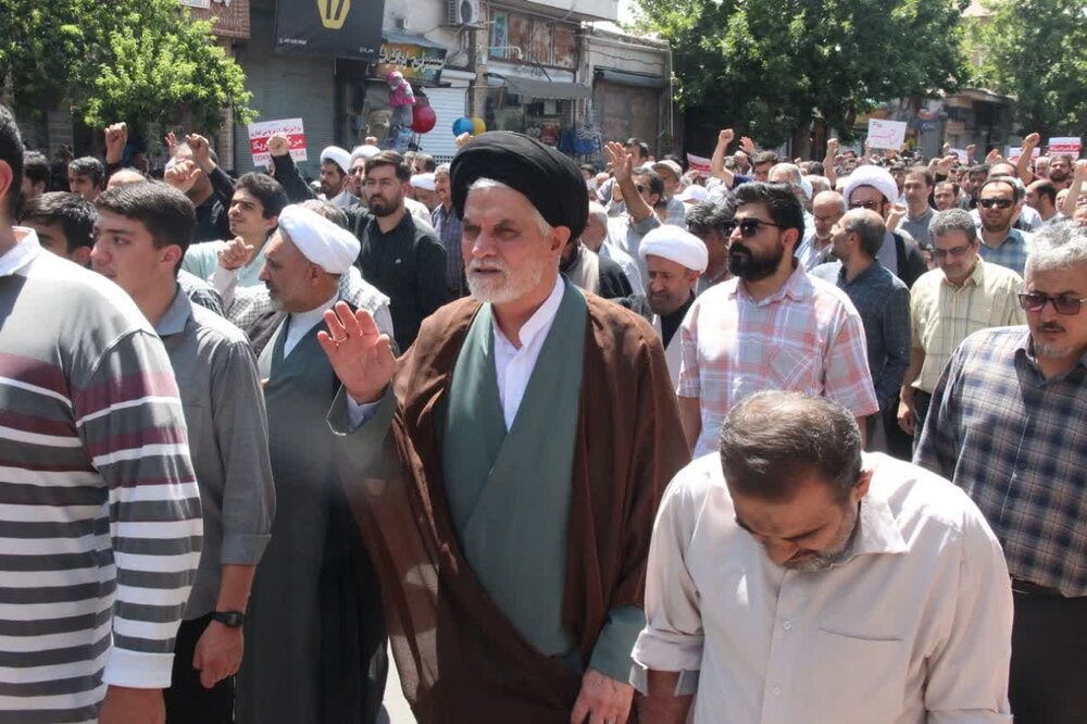 حوزه / مردم استان قزوین حمله رژیم صهیونیستی اسراییل به خاک نظام مقدس جمهوری اسلامی ایران ،بعد از اقامه نماز جمعه این حمله وحشیانه را محکوم نمودند