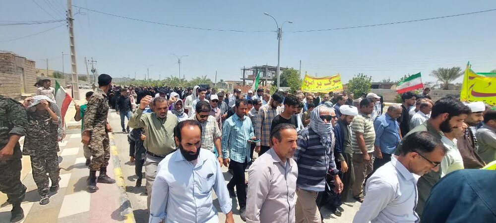 حوزه/ مردم نودژ در نمازجمعه ازن شهر حضور یافته و بعد از اقامه نماز، در محکومیت جنایت رژیم صهیونیستی و پشتیبانی از ولایت فقیه راهپیمایی نمودند.