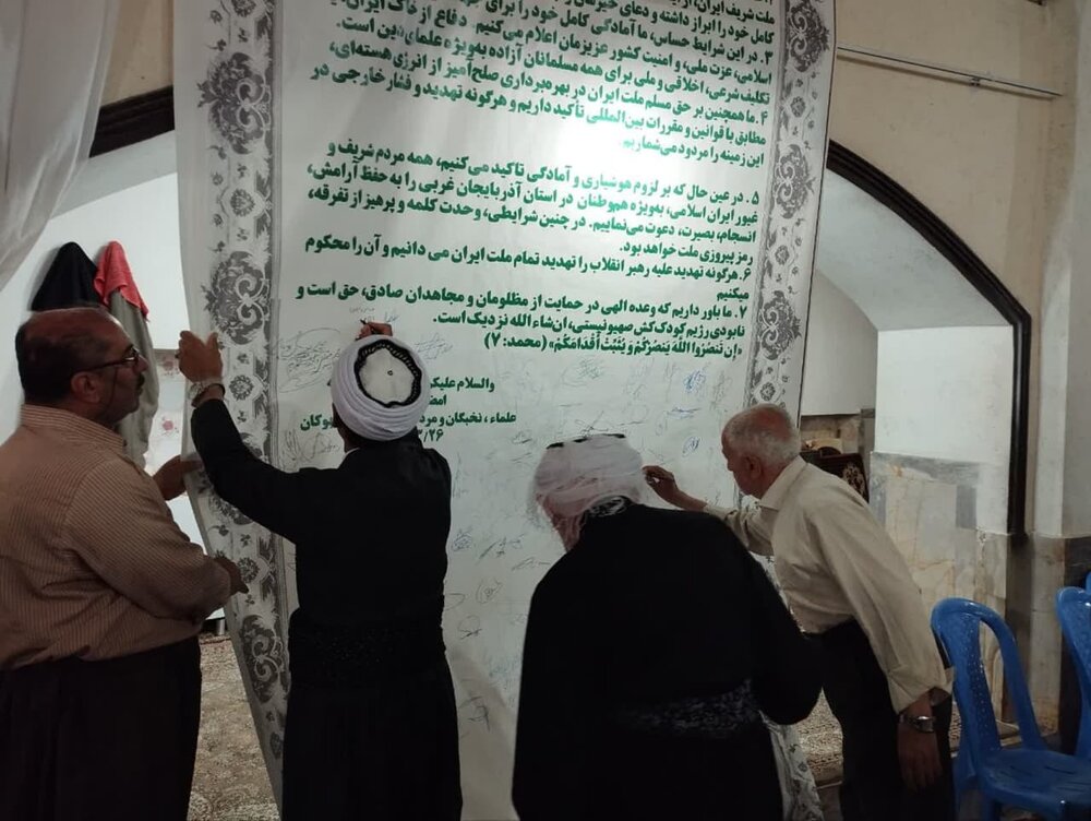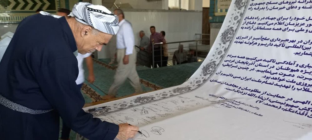 حوزه/ مردم اهل سنت آذربایجان غربی در محکومیت تجاوزات رژیم صهیونیستی و حمایت از رهبر انقلاب و نیروهای نظامی در نماز جمعه های استان، به امضای بیانیه پرداختند.