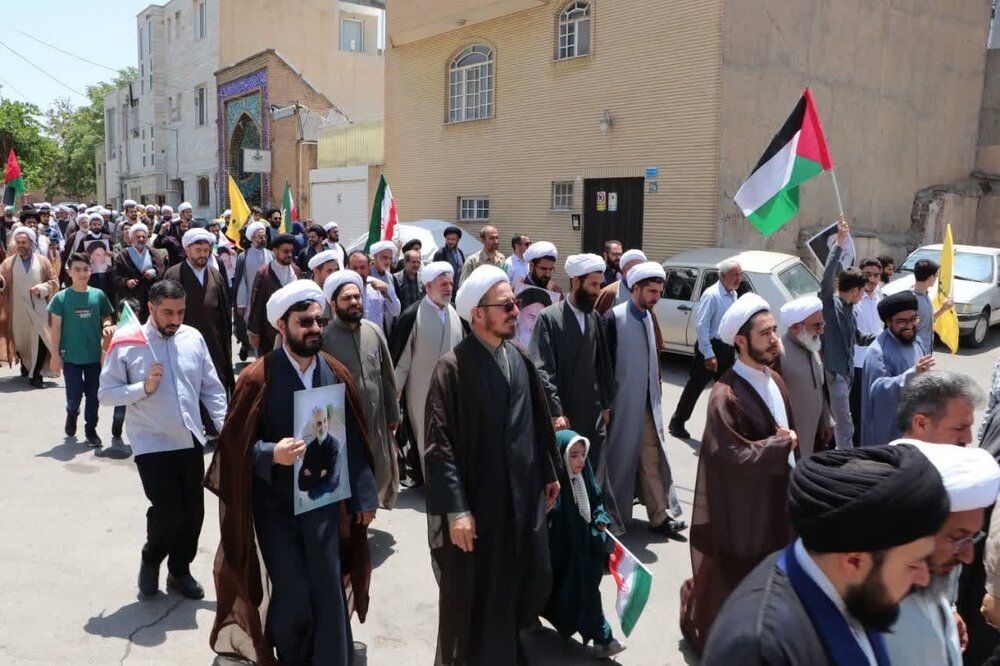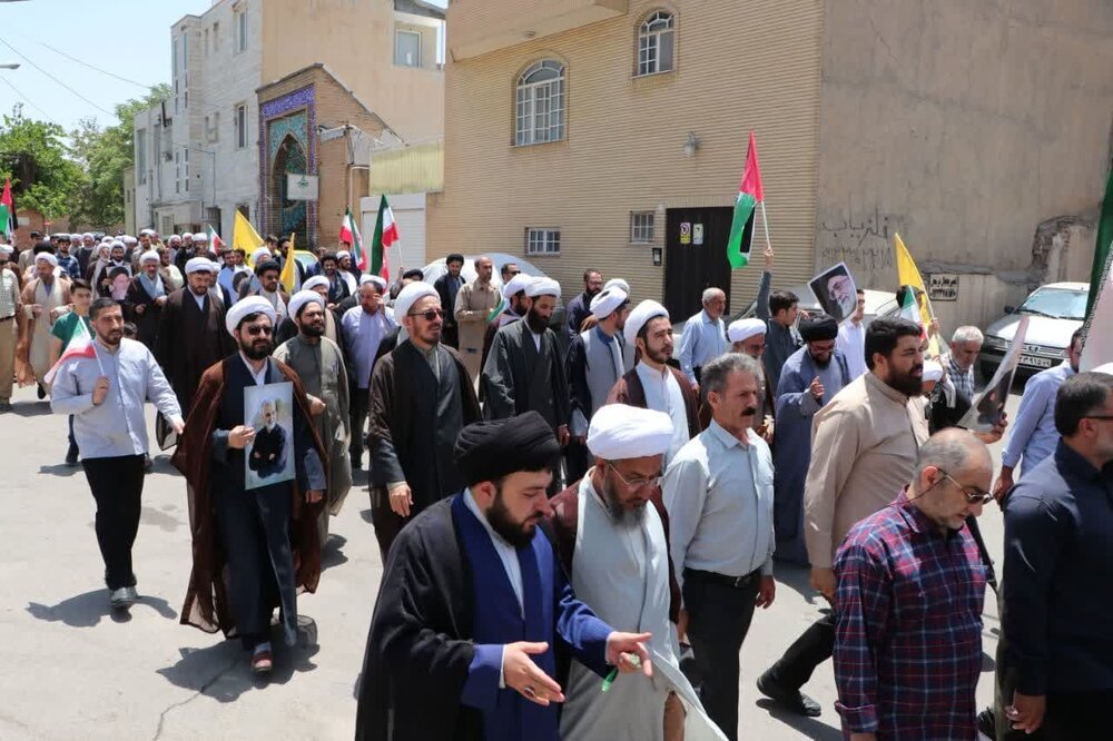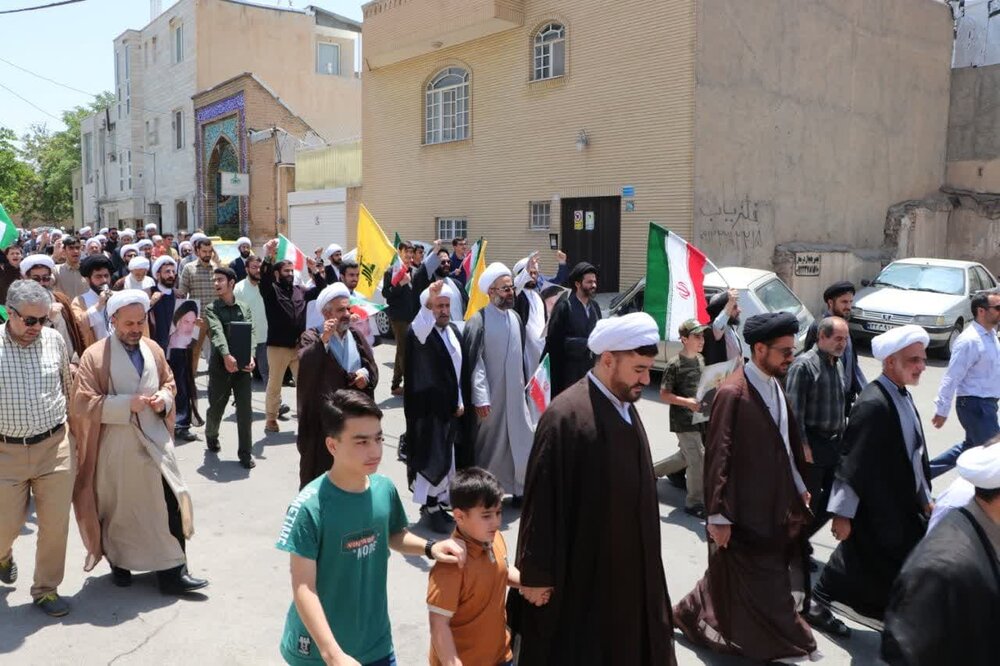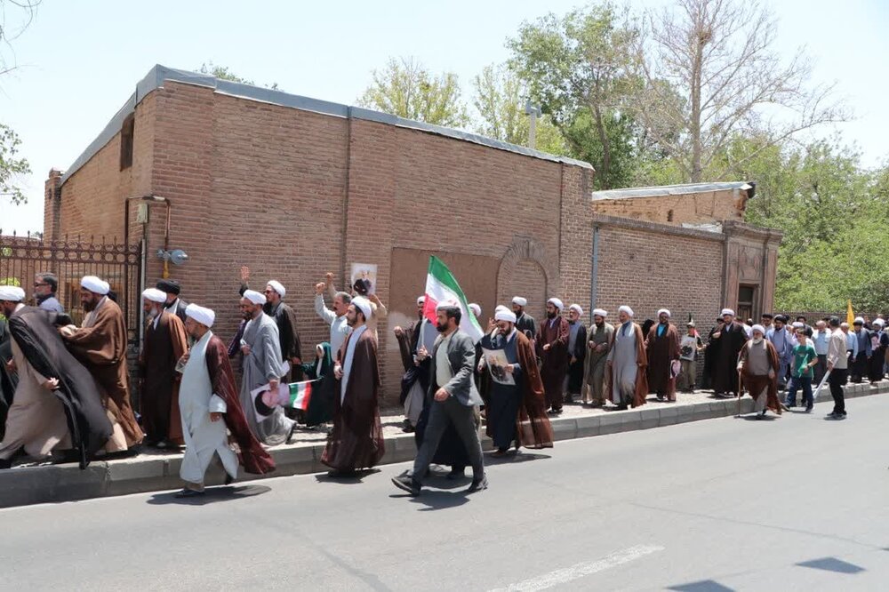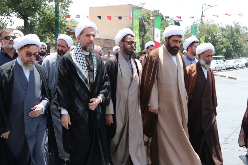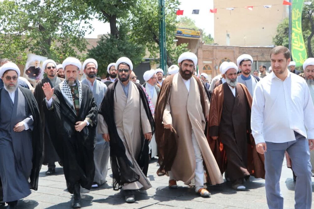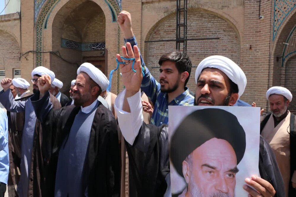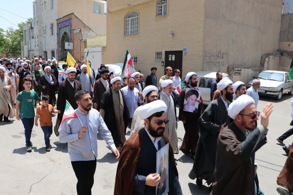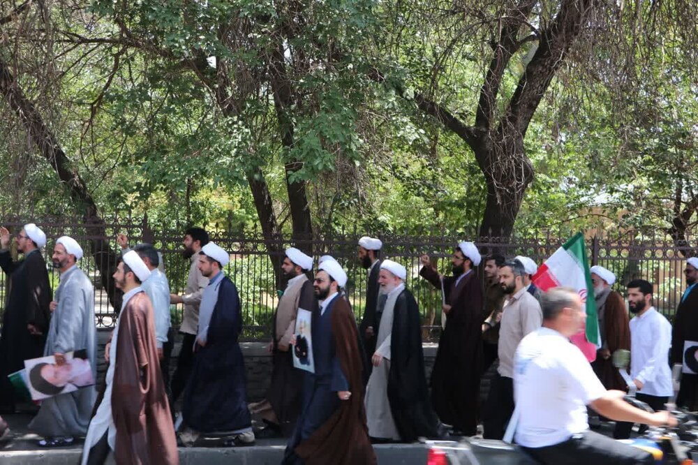 حوزه / اجتماع اساتید ،کادر ،طلاب وروحانیون حوزه علمیه قزوین در حمایت از ساحت مرجعیت و ولایت با حضور نمیانده ولی فقیه در استان قزوین ومدیر حوزه علمیه قزوین در محوطه مسجد شیخ الاسلام برگزارشد