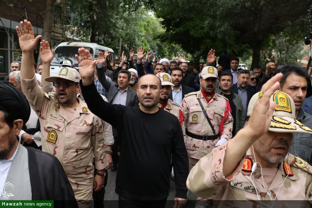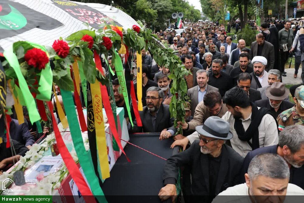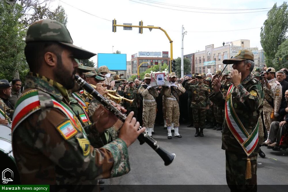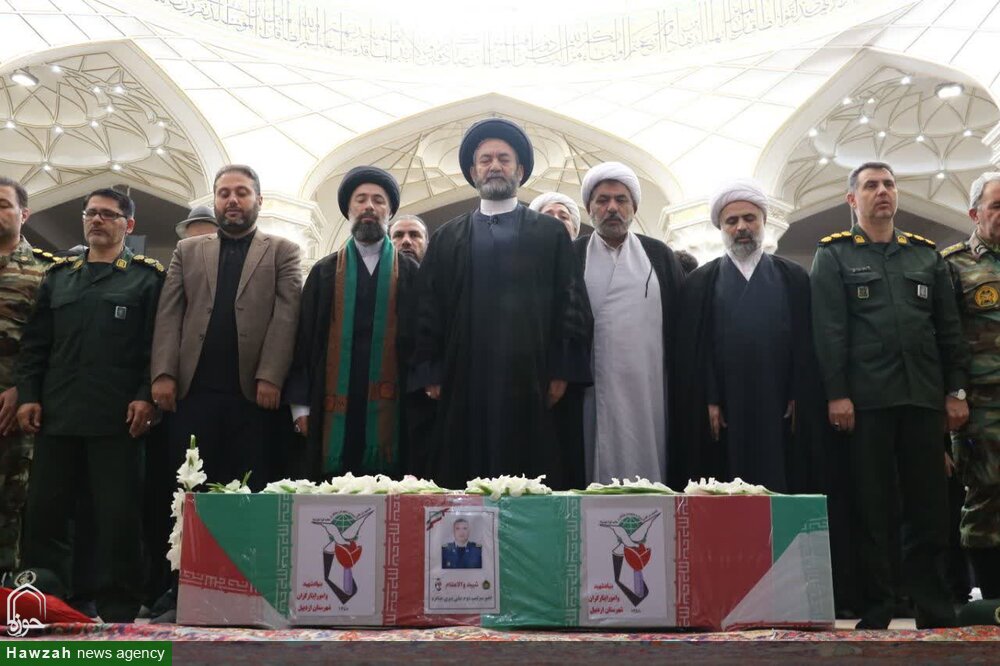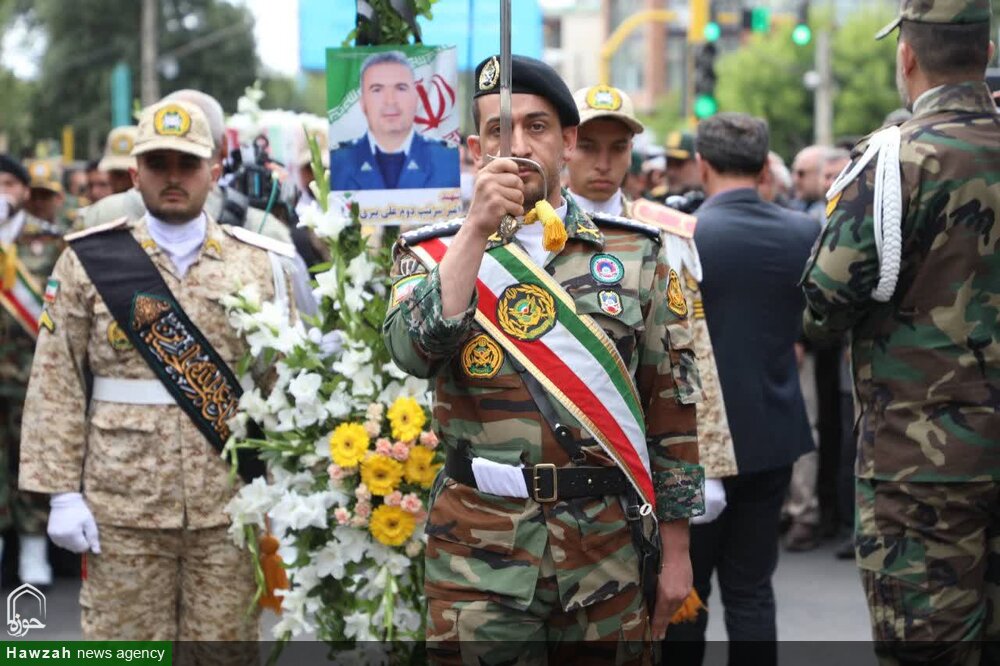 حوزه/ آیین تشییع پیکر شهید والامقام امیر سرتیپ دوم علی پیری جناقرد از شهدای مدافع وطن در تجاوز رژیم صهیونیستی به پایگاه پدافند هوایی ارتش در مرز استان اردبیل، با حضور مردم و مسؤولان در مقابل مصلای امام خمینی(ره) اردبیل برگزار شد.