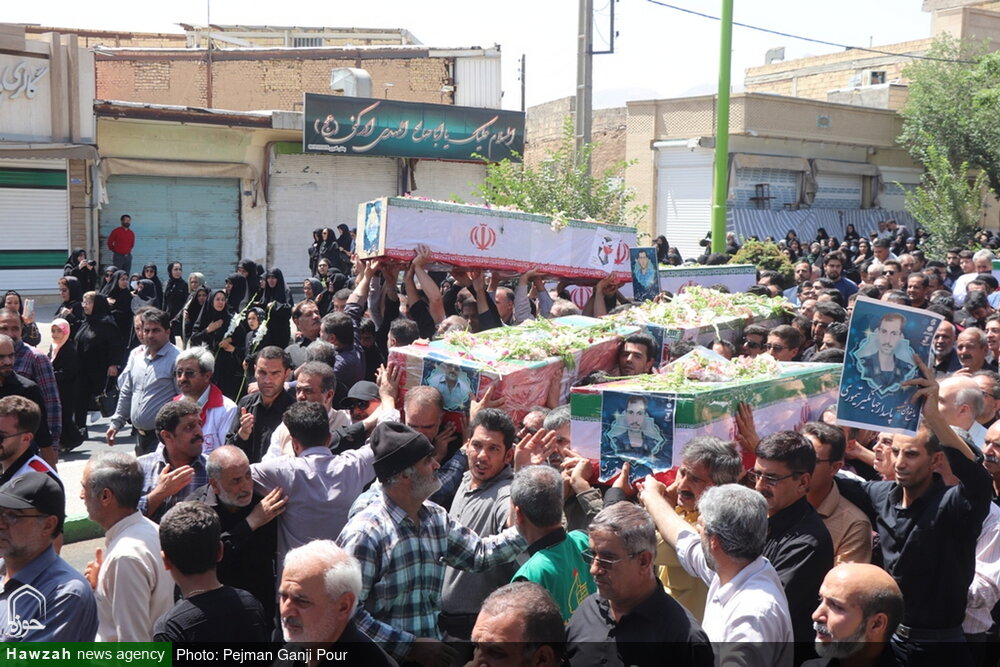 پیکر مطهر ۶ نفر از بسیجیان غیور و پاسداران انقلاب اسلامی شهرستان شهرضا شهیدان سعید یونسی، مصطفی یونسی (از شهدای بسیجی)، سیدعلیاکبر میرمحمدی (از شهدای امدادگر)، حسن صدری، اسماعیل قرقانی و جهانگیر تیموری (از نیروهای سپاه پاسداران) که در پی تجاوز رژیم غاصب و کودککش صهیونیستی به کشورمان شهید شدند، با حضور پر شور مردم در شهرضای اصفهان تشییع شد.