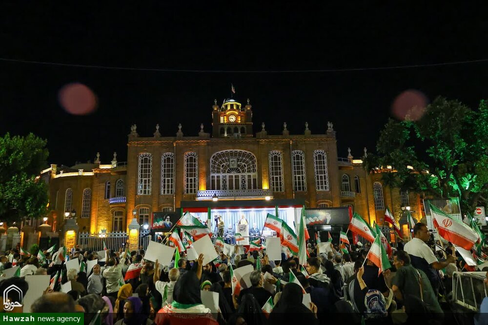 حوزه | تجمع مردم تبریز در حمایت از عملیات بشارت فتح در میدان ساعت تبریز با حضور حجت الاسلام والمسلمین مطهری اصل، نماینده ولی فقیه در استان برگزار شد.