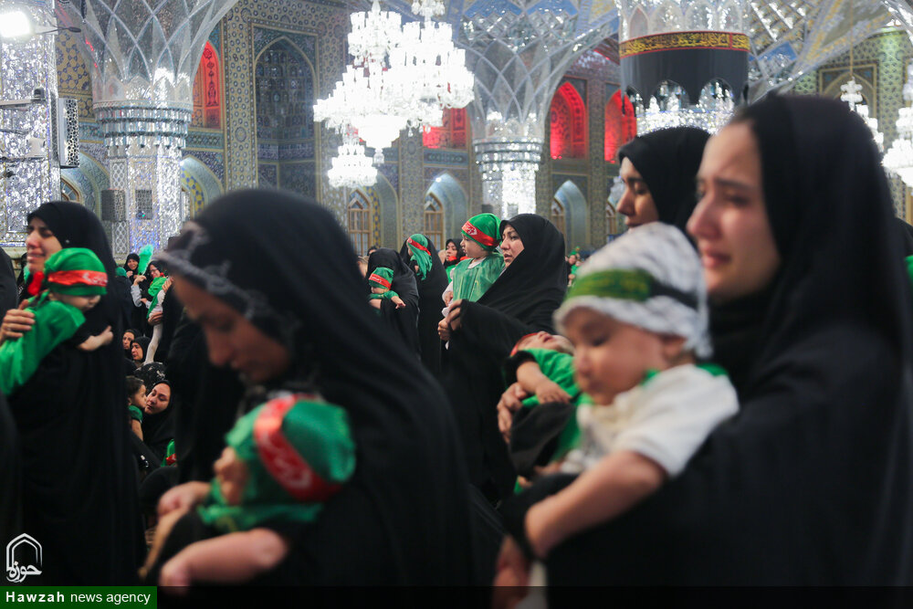 آیین معنوی «شیرخوارگان حسینی» جمعه ۶ تیرماه ۱۴۰۴ همزمان با نخستین جمعه ماه محرم، با حضور پرشور مادران و کودکان، در رواق امام خمینی(ره) حرم مطهر رضوی برگزار شد.