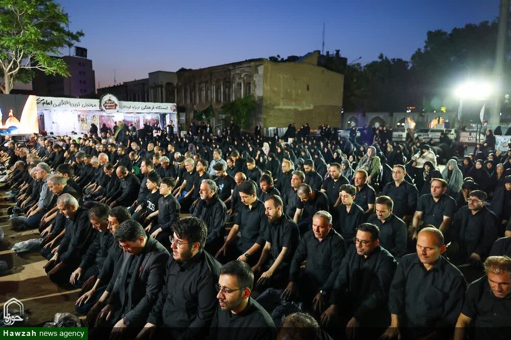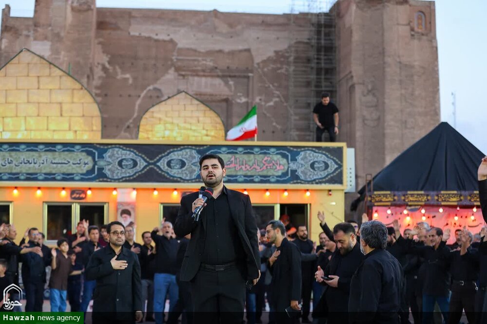 حوزه/ همزمان با شب نهم ماه محرم اولین روز از مراسم عزاداری حضرت اباعبدالله الحسین علیه السلام در سنگ فرش مصلا حضرت امام خمینی (ره) تبریز با حضور نماینده ولی فقیه در آذربایجان شرقی حجت الاسلام و المسلمین مطهری اصل برگزار شد.