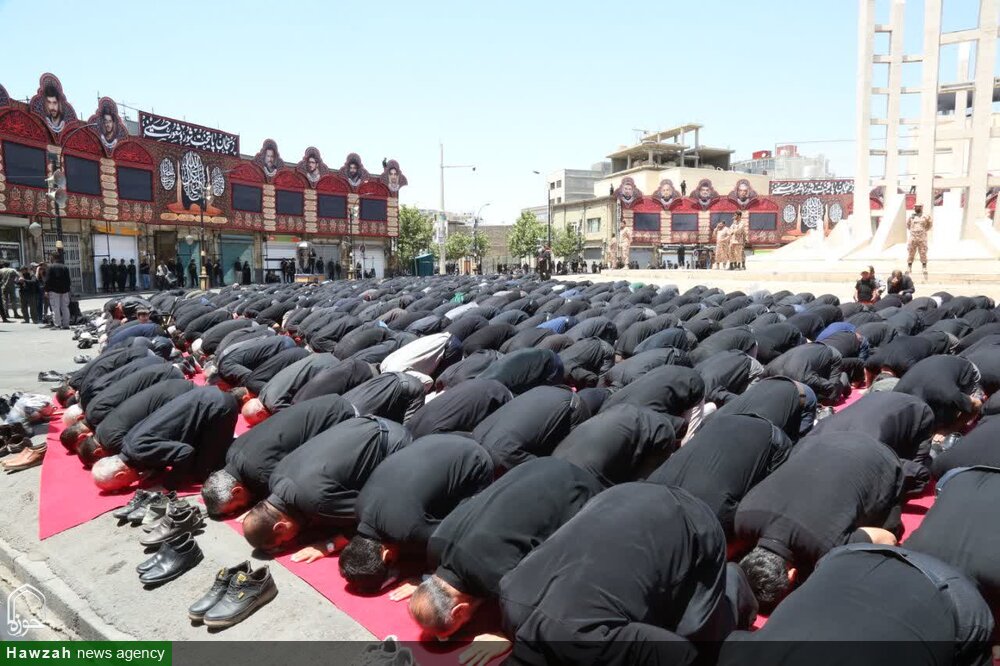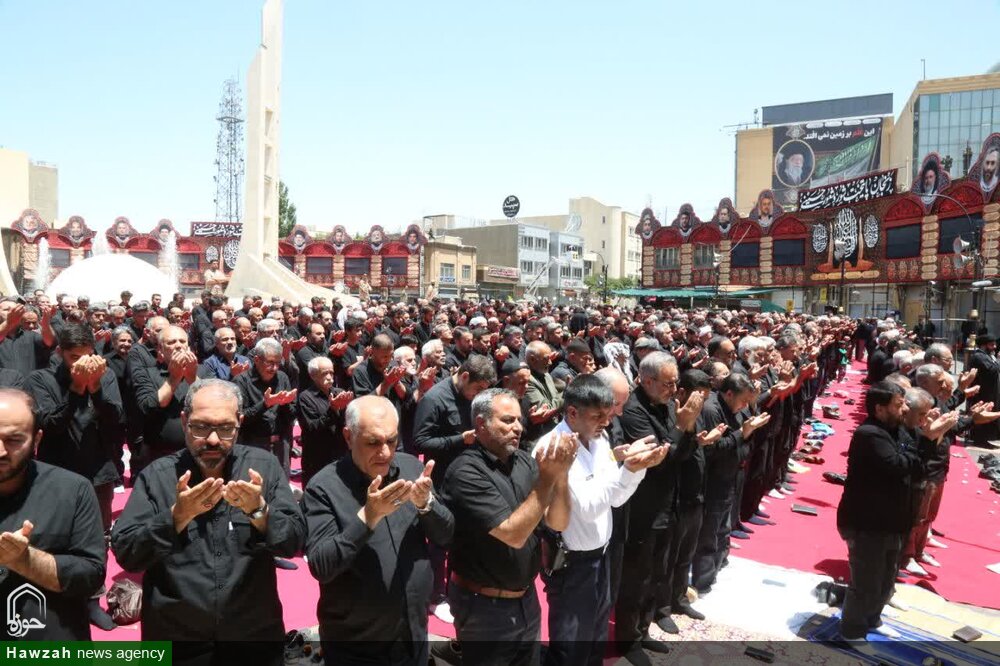 حوزه/ همزمان با عاشورای حسینی آیین پر فیض نماز جماعت ظهر عاشورا در فضایی سرشار از معنویت و سوگ حسینی در میدان انقلاب زنجان اقامه شد.