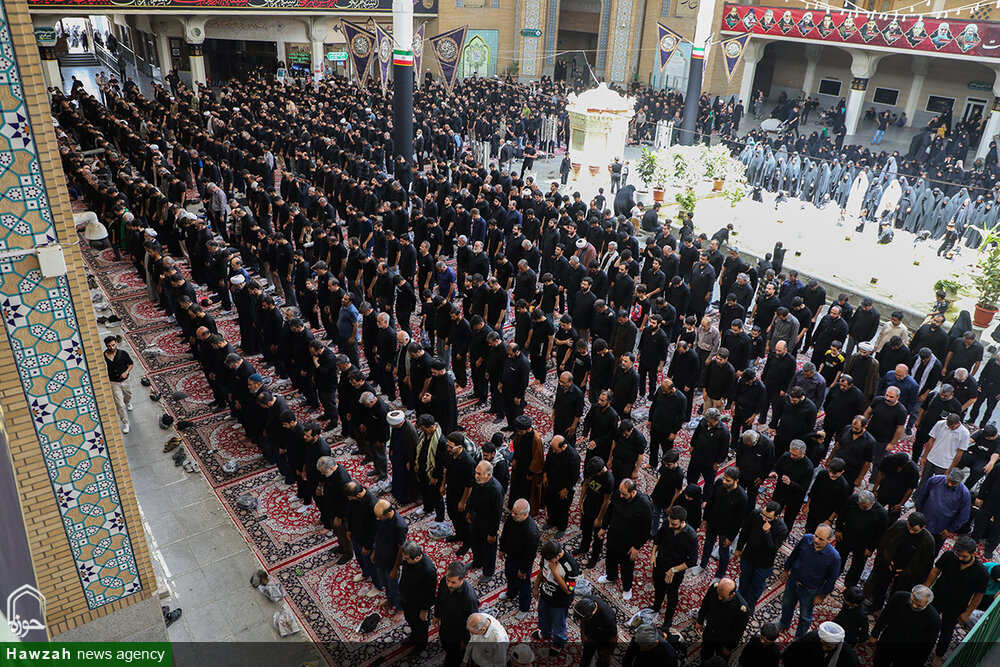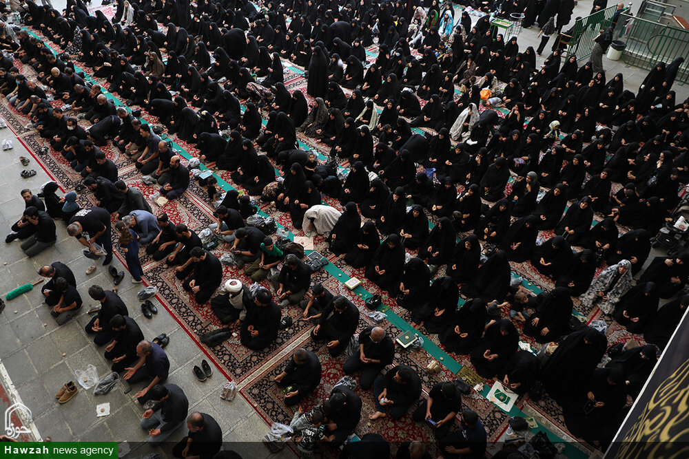 نماز ظهر عاشورا در صحن‌ها و شبستان های مختلف حرم مطهر حضرت فاطمه معصومه سلام الله علیها با حضور پرشور عزاداران حسینی اقامه شد