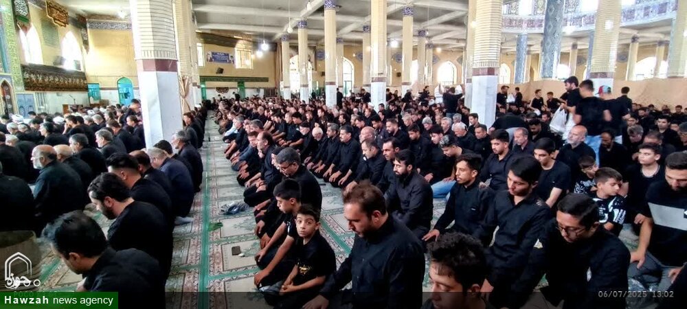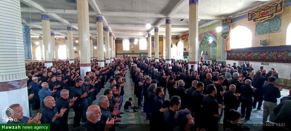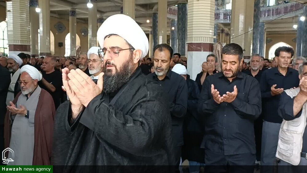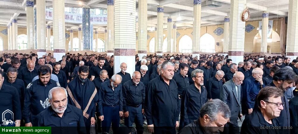 حوزه/ همزمان با عاشورای حسینی آیین پر فیض نماز جماعت ظهر عاشورا در فضایی سرشار از معنویت و سوگ حسینی در اسکو اقامه شد.