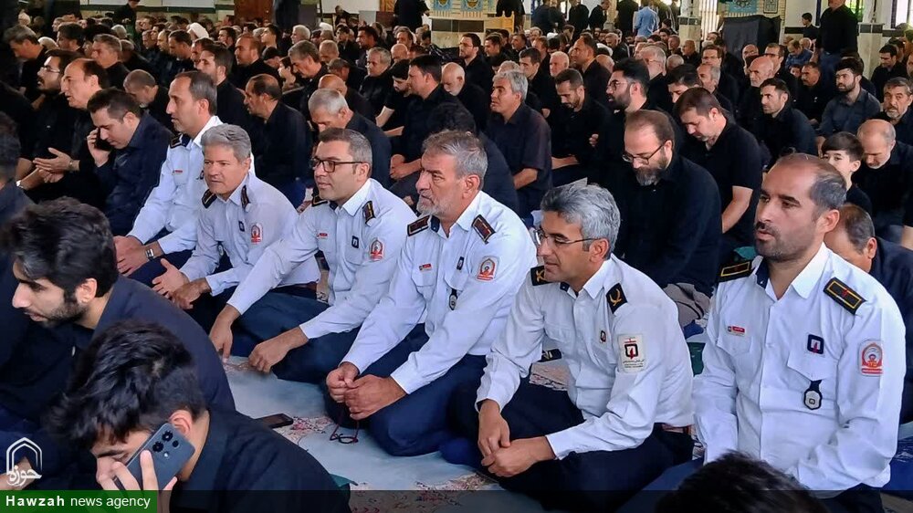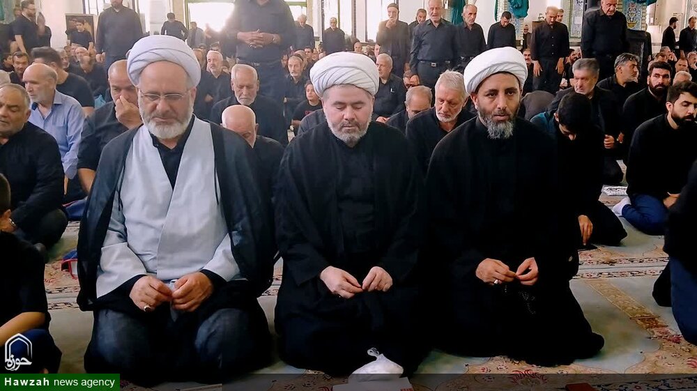 حوزه/ همزمان با عاشورای حسینی آیین پر فیض نماز جماعت ظهر عاشورا در فضایی سرشار از معنویت و سوگ حسینی در میانه اقامه شد.
