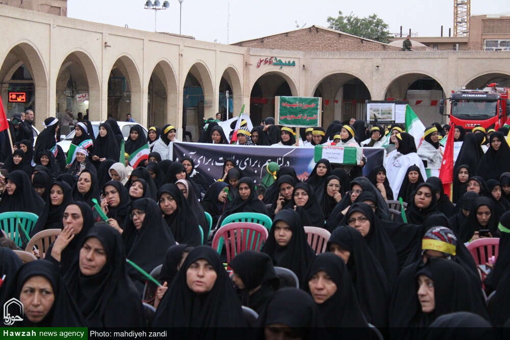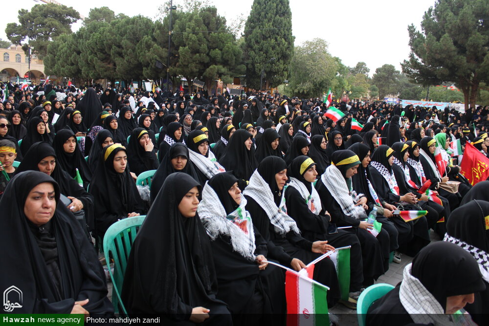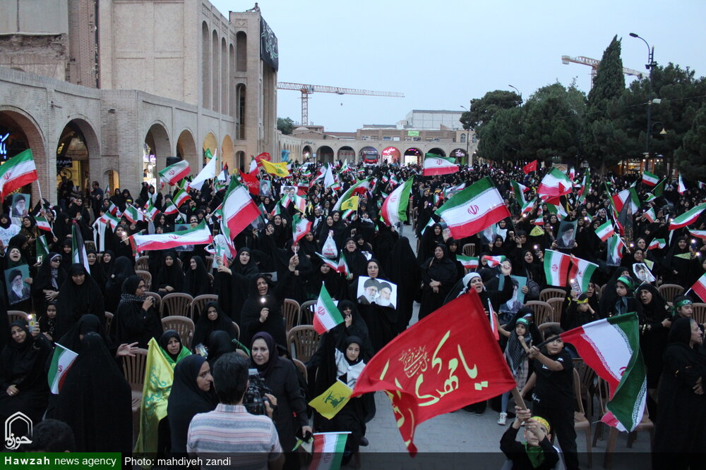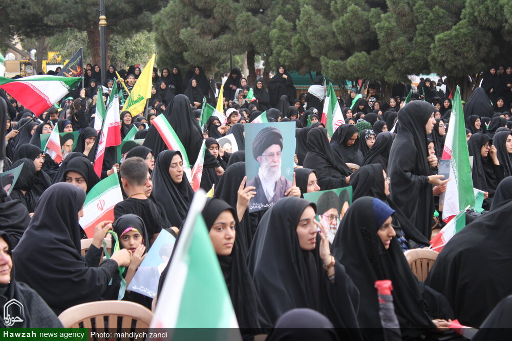 حوزه/ اجتماع بزرگ زینبیون (لشکر زنان مقتدر کرمان) در حمایت از حریم ولایت و محکومیت استکبار عصر امروز در سالروز اسارت حضرت زینب (س) با حضور اقشار مختلف بانوان کرمان در محل میدان تاریخی ارگ این شهر برگزار شد.